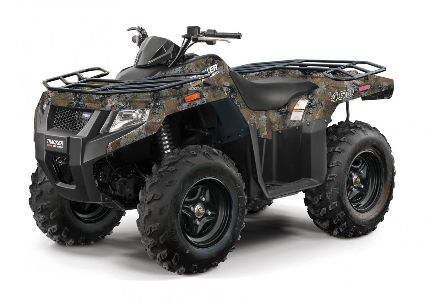The TRACKER OFF ROAD 450 carries more features for the best value in its class. The torquey 443cc EFI engine kicks up dirt and hauls a load via the twin steel cargo racks and the 2” receiver hitch in the rear. High and low gears paired with 4WD make the 450 an extremely capable machine for any terrain.