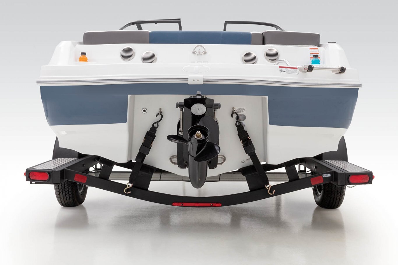 NMMA® certified EPA-compliant fuel system Drink holders 6 stainless steel mooring cleats Stainless steel passenger grab handles Conveniently located fire extinguisher port Fire extinguisher Horn Paddle