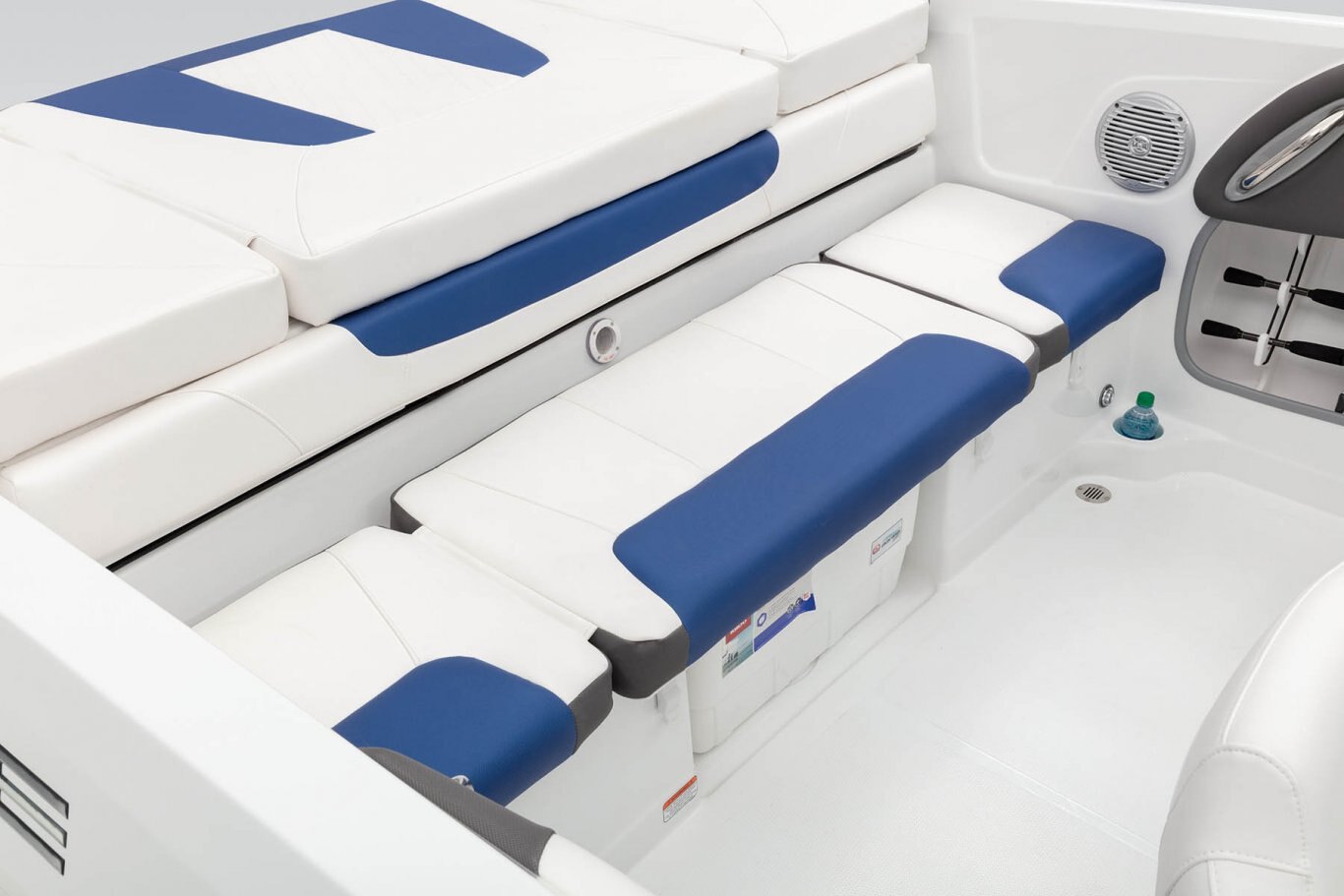- Aft bench seat w/insulated port storage compartment, removable 36-qt. (34.07 L) cooler & starboard livewell