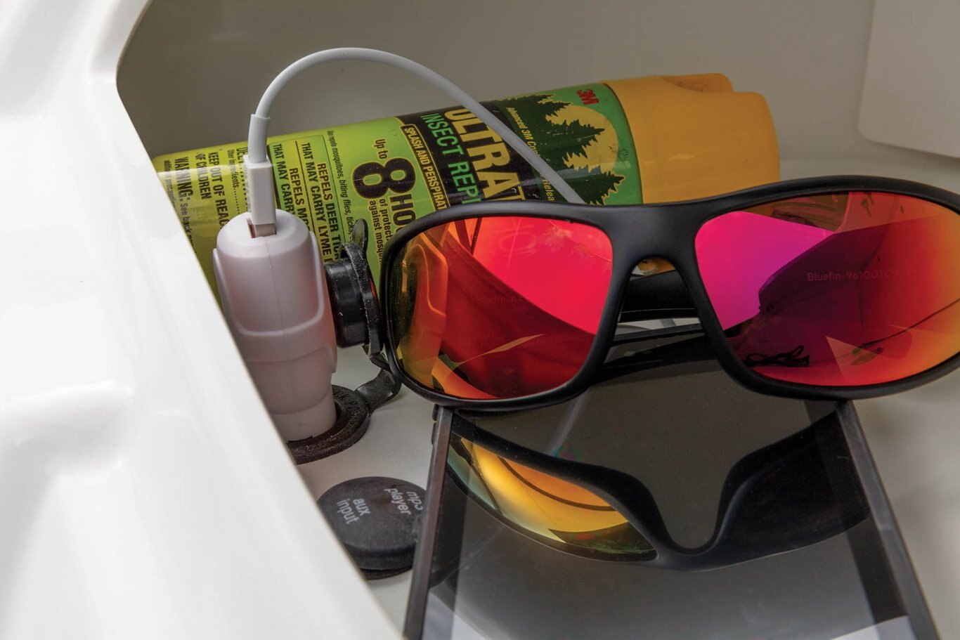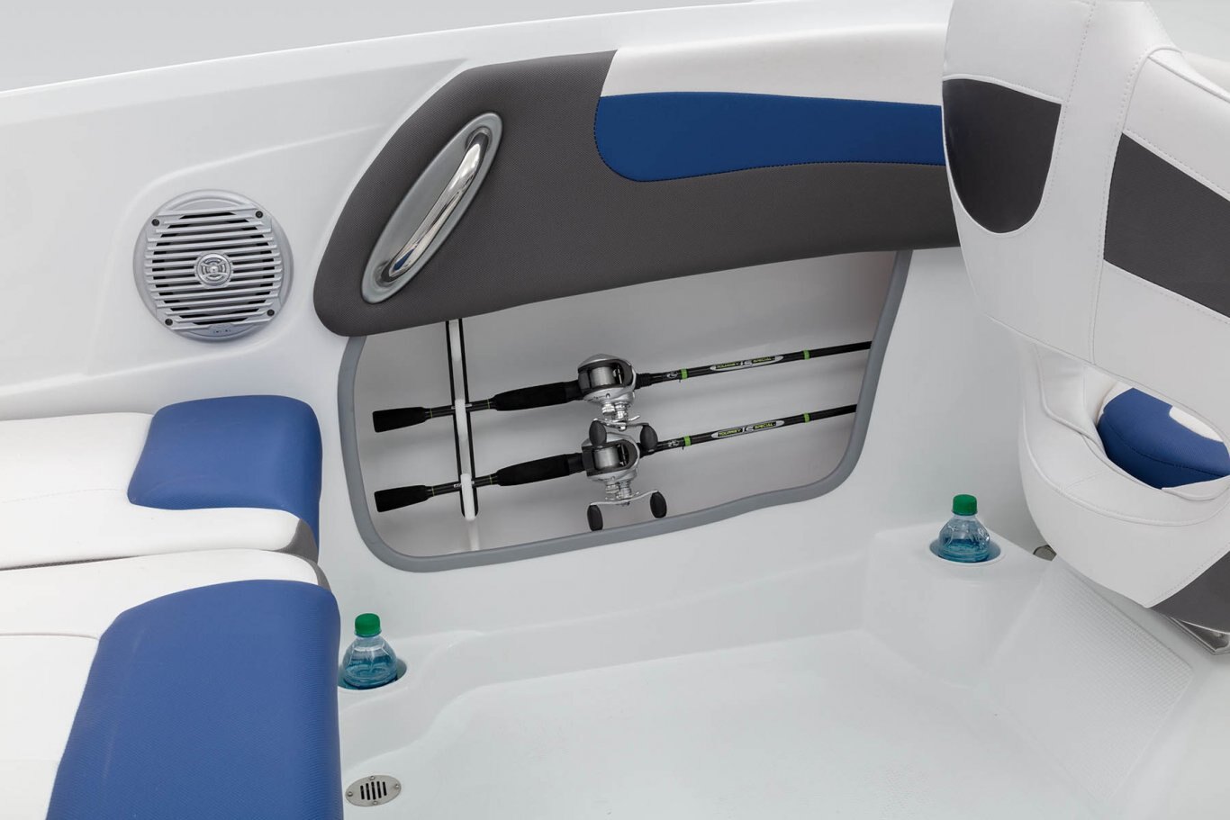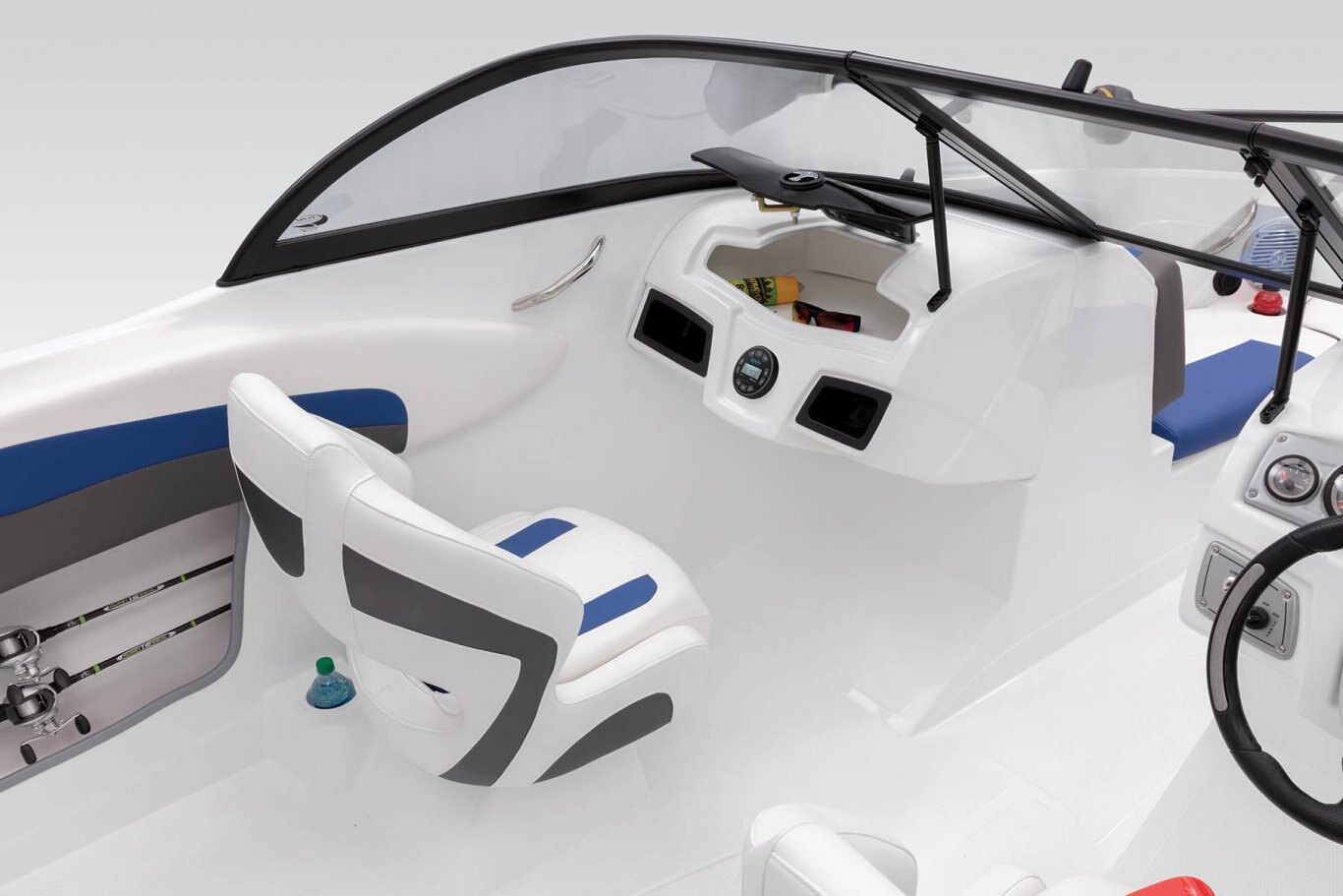 For slower—yet just as exciting—fun, you can deploy the trolling motor, set up the fishing chairs at the fore and aft positions and fill up the livewell. |