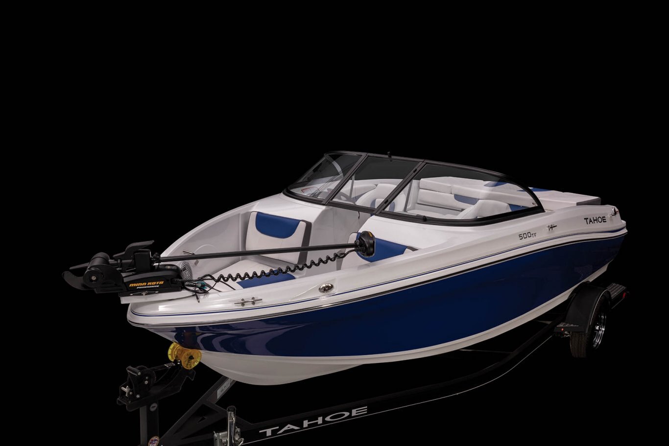 The TAHOE® 500 TF runabout brings together the performance, comfort, space and features versatility-loving families need to cruise, tube, relax and fish—all in the same outing.