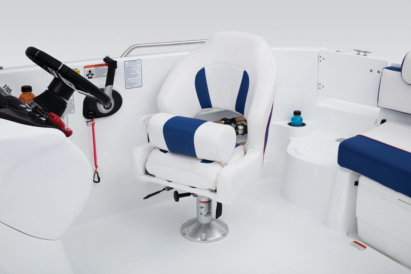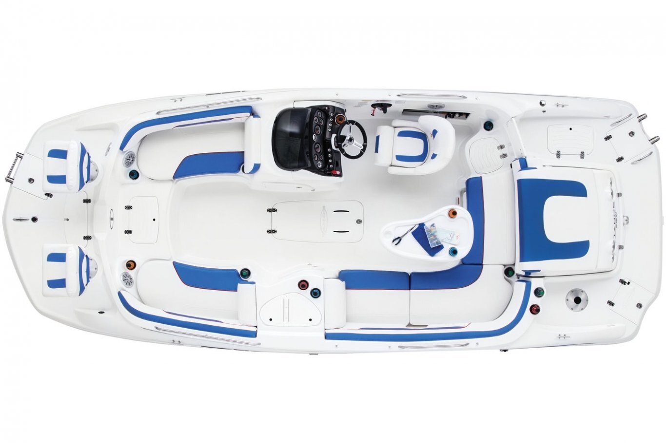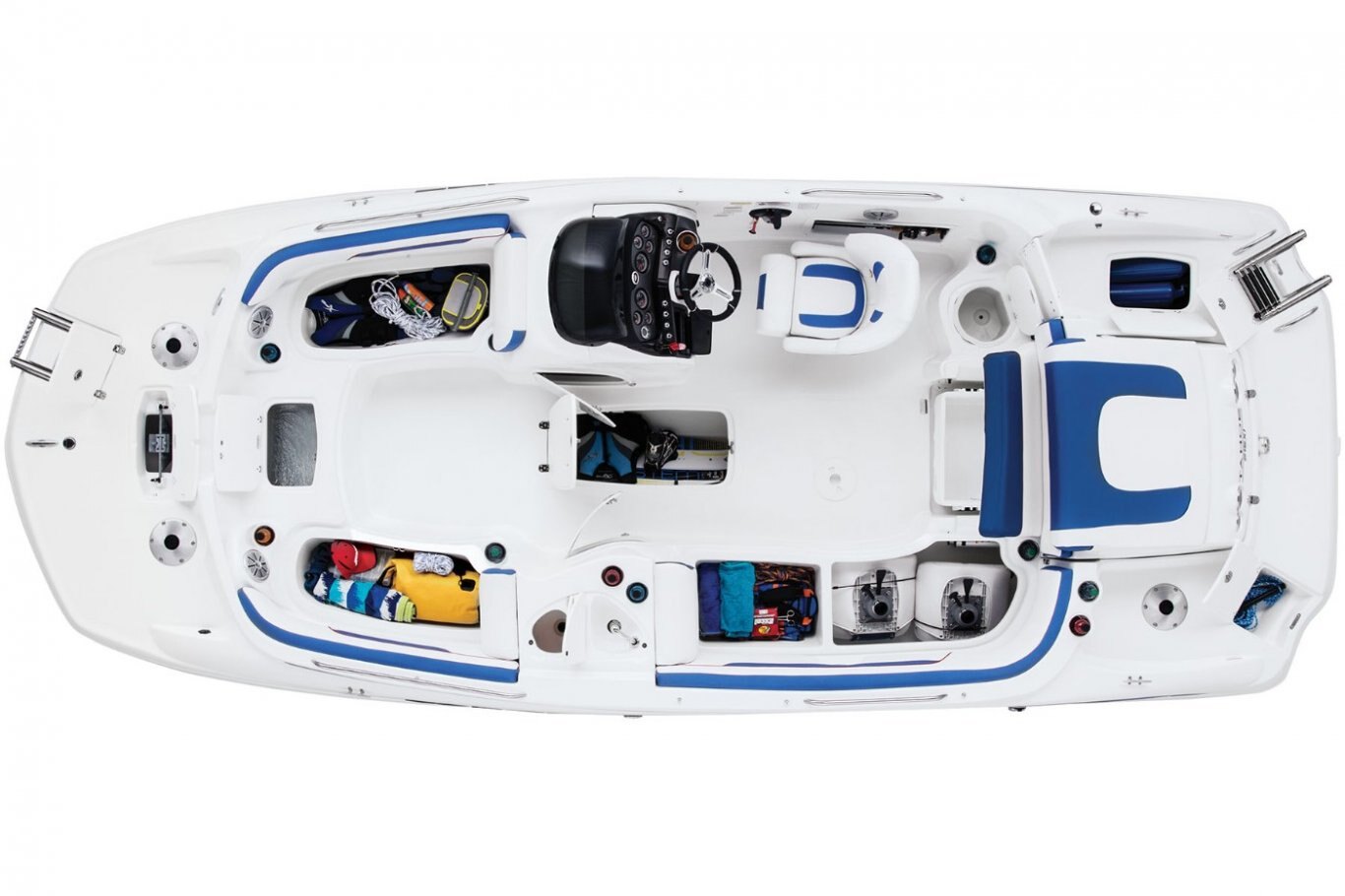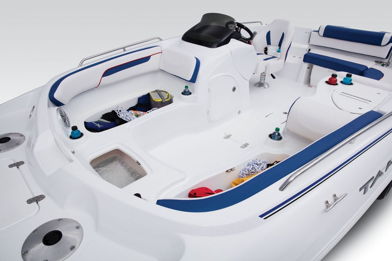 For the anglers, that means two removable casting chairs with three total base locations (two fore, one aft), rod storage and a 20-gallon aerated livewell. For watersports enthusiasts, the POWERGLIDE® hull design, ski tow ring and in-floor wakeboard storage are the ticket. And for the family and friends? You can never go wrong with plush seating, a refreshment center, Bimini top, stereo…the list just keeps going and going! Check it out to see for yourself. |