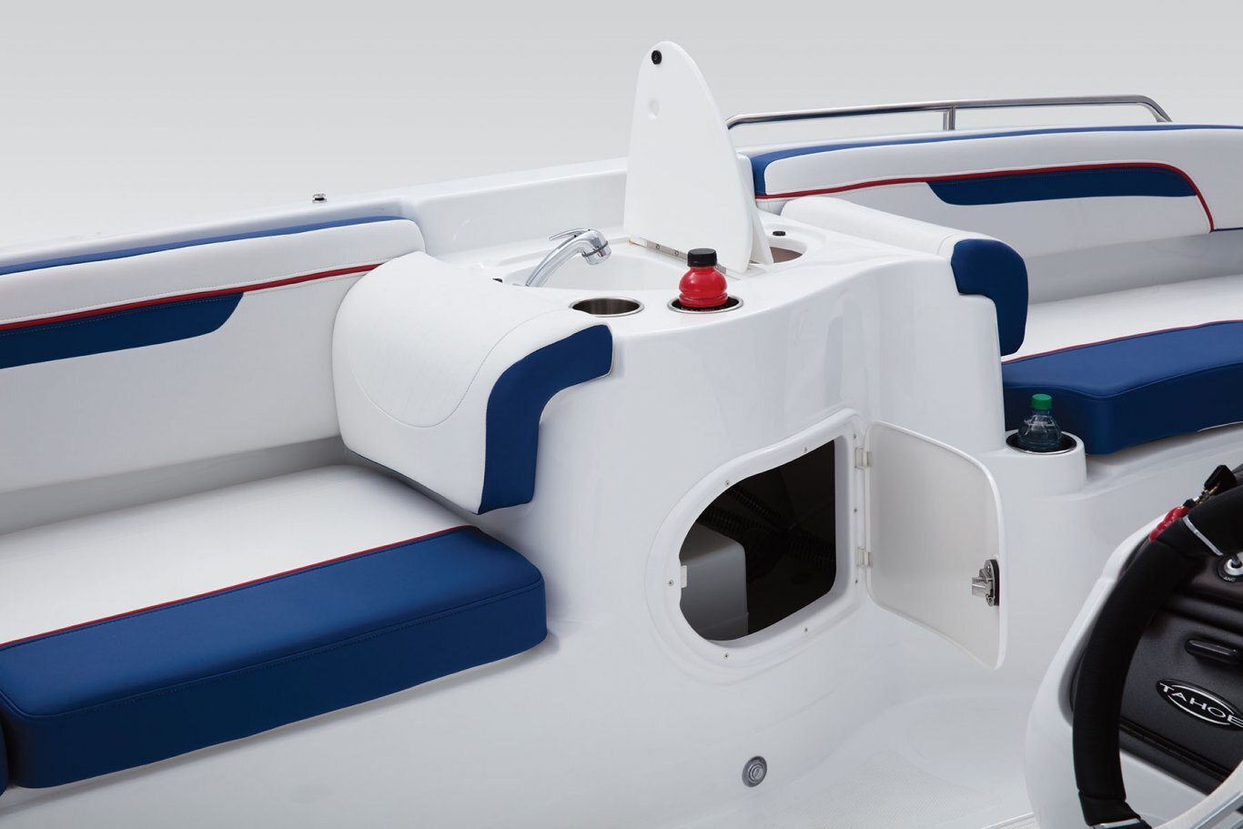 - Port refreshment center w/sink, pull-out sprayer & on-demand freshwater w/15-gal. (56.78 L) tank