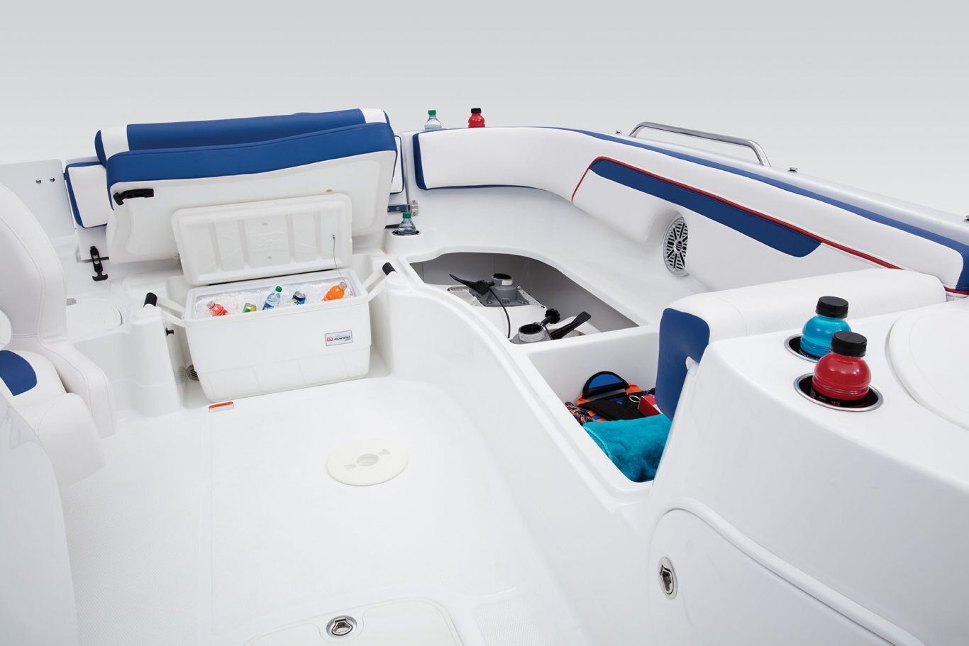- Aft L-lounge w/storage & removable 36-qt. (34.07 L) cooler