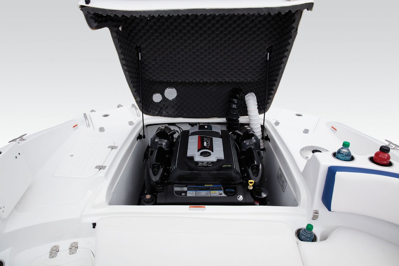 - Aft swim platform w/fishing seat base, insulated storage & covered 4-step boarding ladder