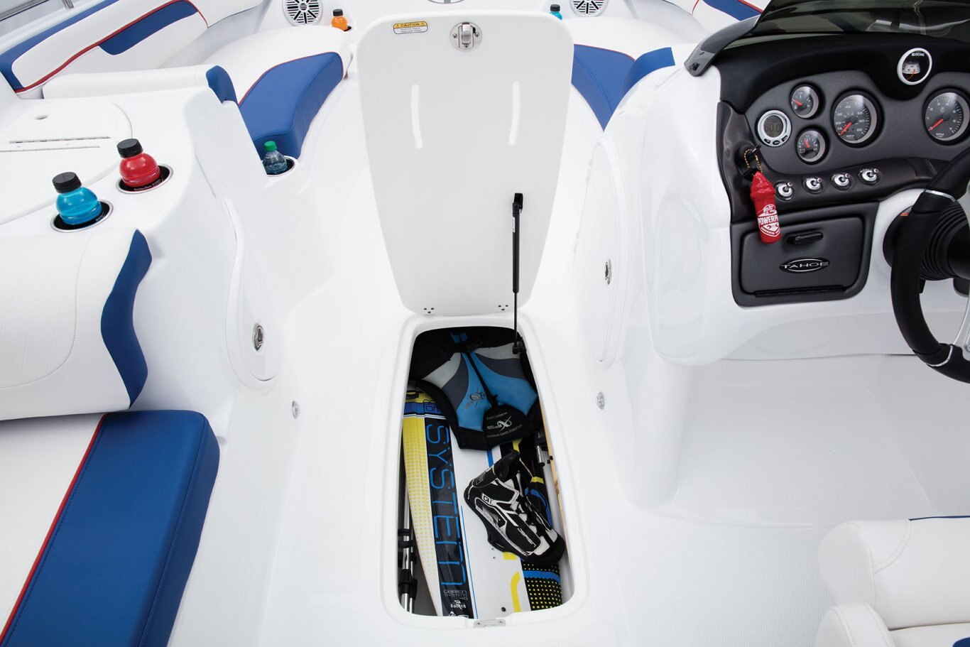 - In-floor wakeboard/ski storage compartment w/hold-open lid assist