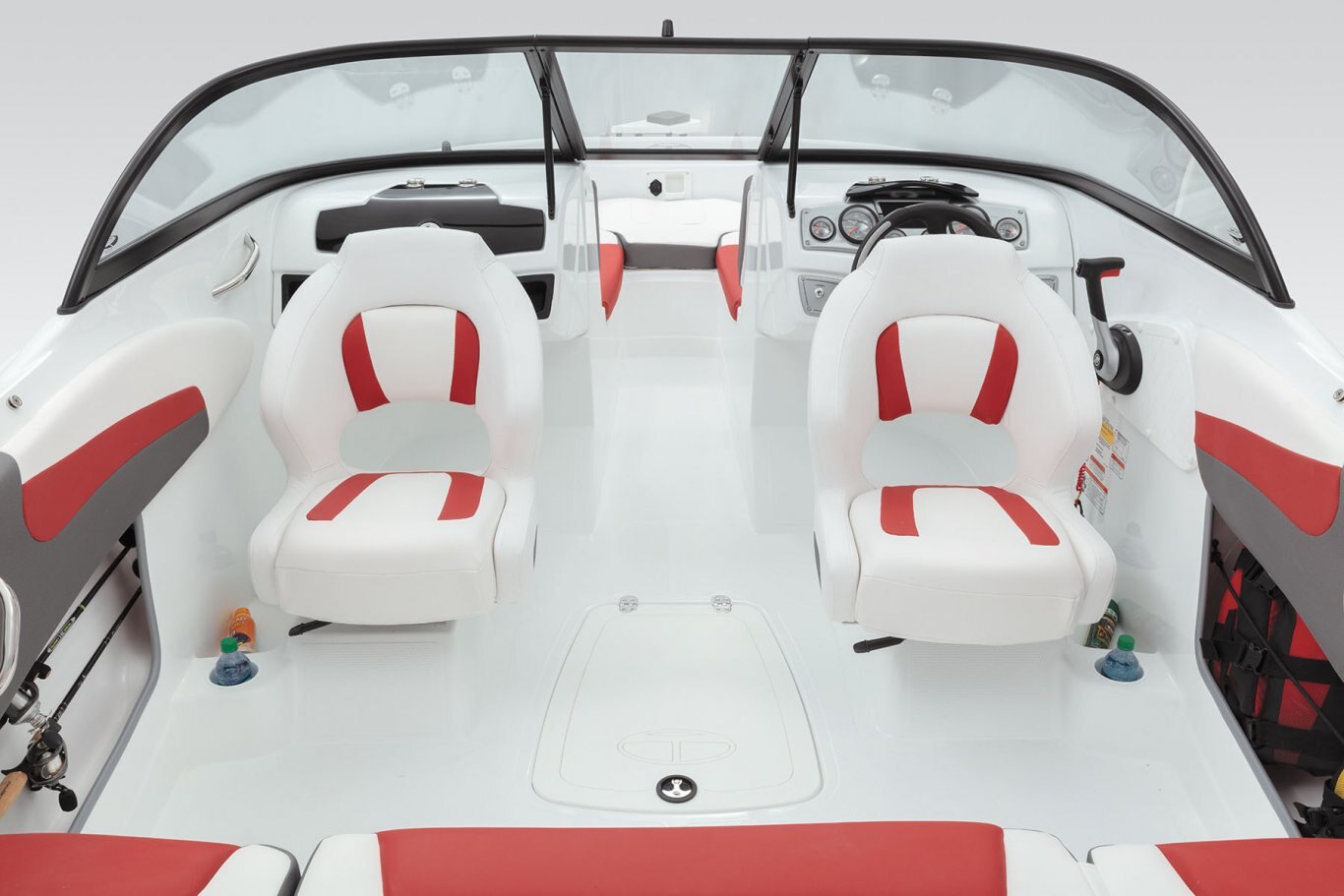 The TAHOE® 200 S is a well-rounded fish-and-ski destined to make memories. Luxurious features, stout outboard power and ample size deliver capability in spades for fishing, cruising, or ramping it for blasts around the lake. A bow lounge conceals huge storage while the cockpit is refined with hydraulic steering, precision gauges and a helm designed for maximum control. In-gunnel and in-floor storage boxes keep gear handy yet hidden.