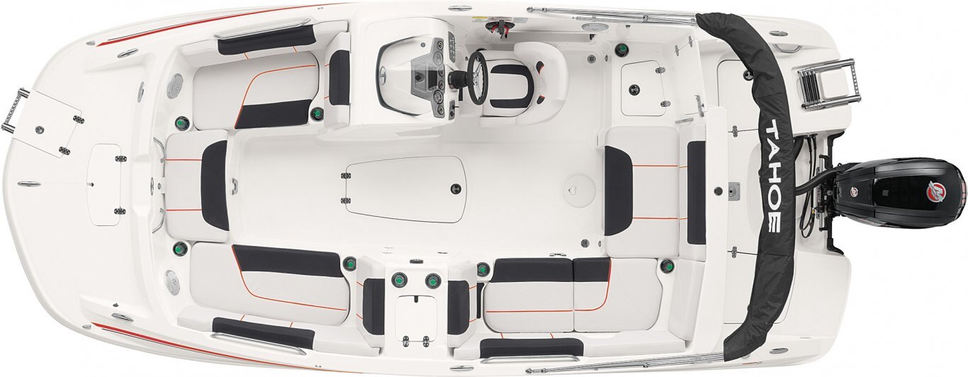 The TAHOE® 1950 deck boat lets you experience summer the right way—on the water with family and friends in bountiful luxury with exhilarating performance.