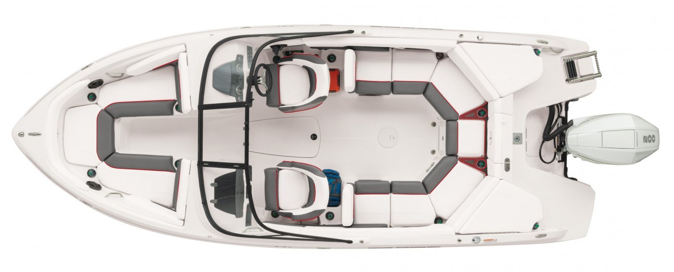 Speaking of cranking it up, a Kicker® stereo delivers with six speakers delivers an even better atmosphere while the wraparound aft bench lets your whole gang make the most of your time. Maximized deck space and storage let you bring everything and keep it handy while a new 8” touchscreen multifunction display keeps tabs on your outboard, the water depth and displays your speed with GPS precision.