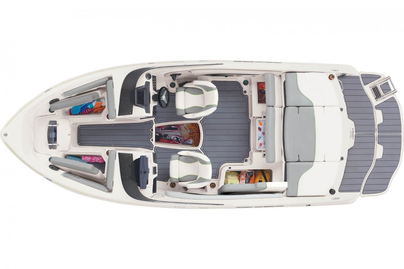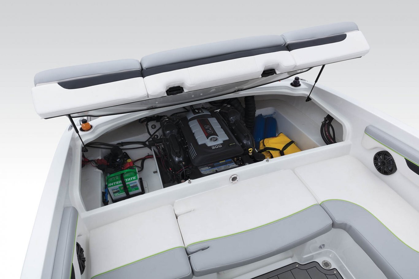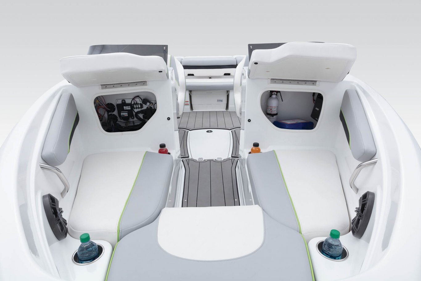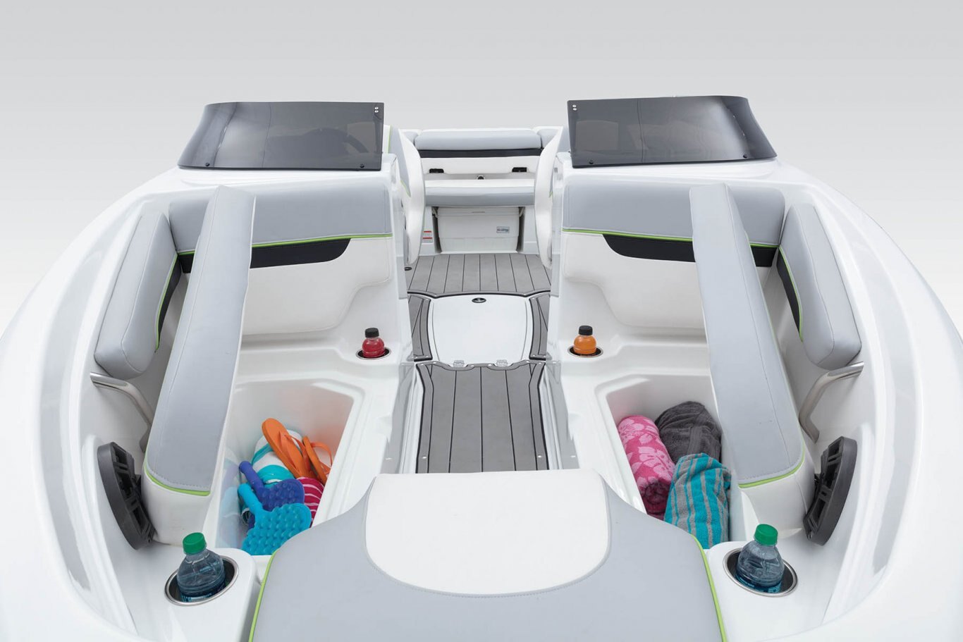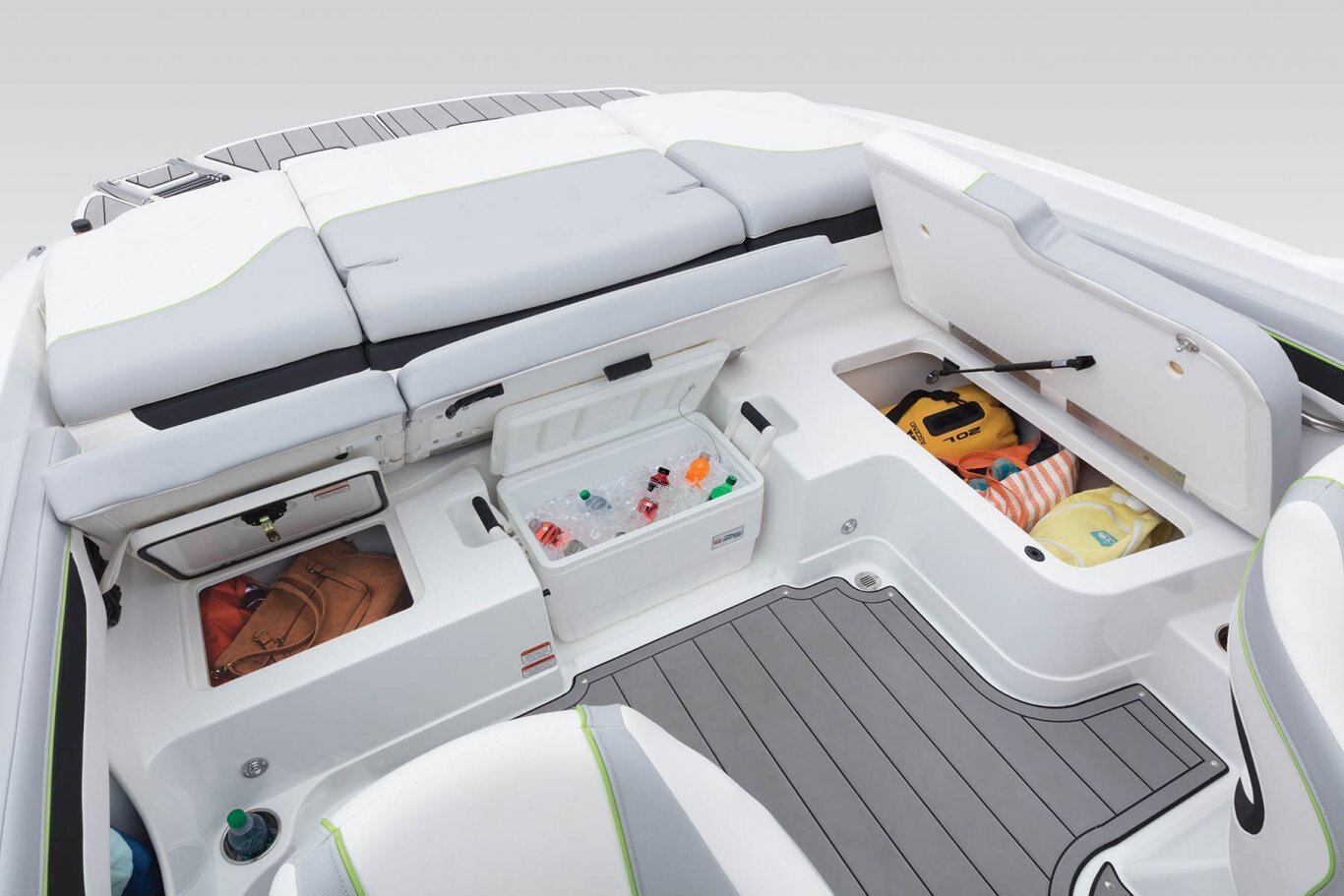 Massive aft sun pad Sprawl out for a nap or join friends atop the soft sun pad covered in smooth marine-grade vinyl. Pop it open to access the engine and extra storage or tilt it open for a lounging position. |