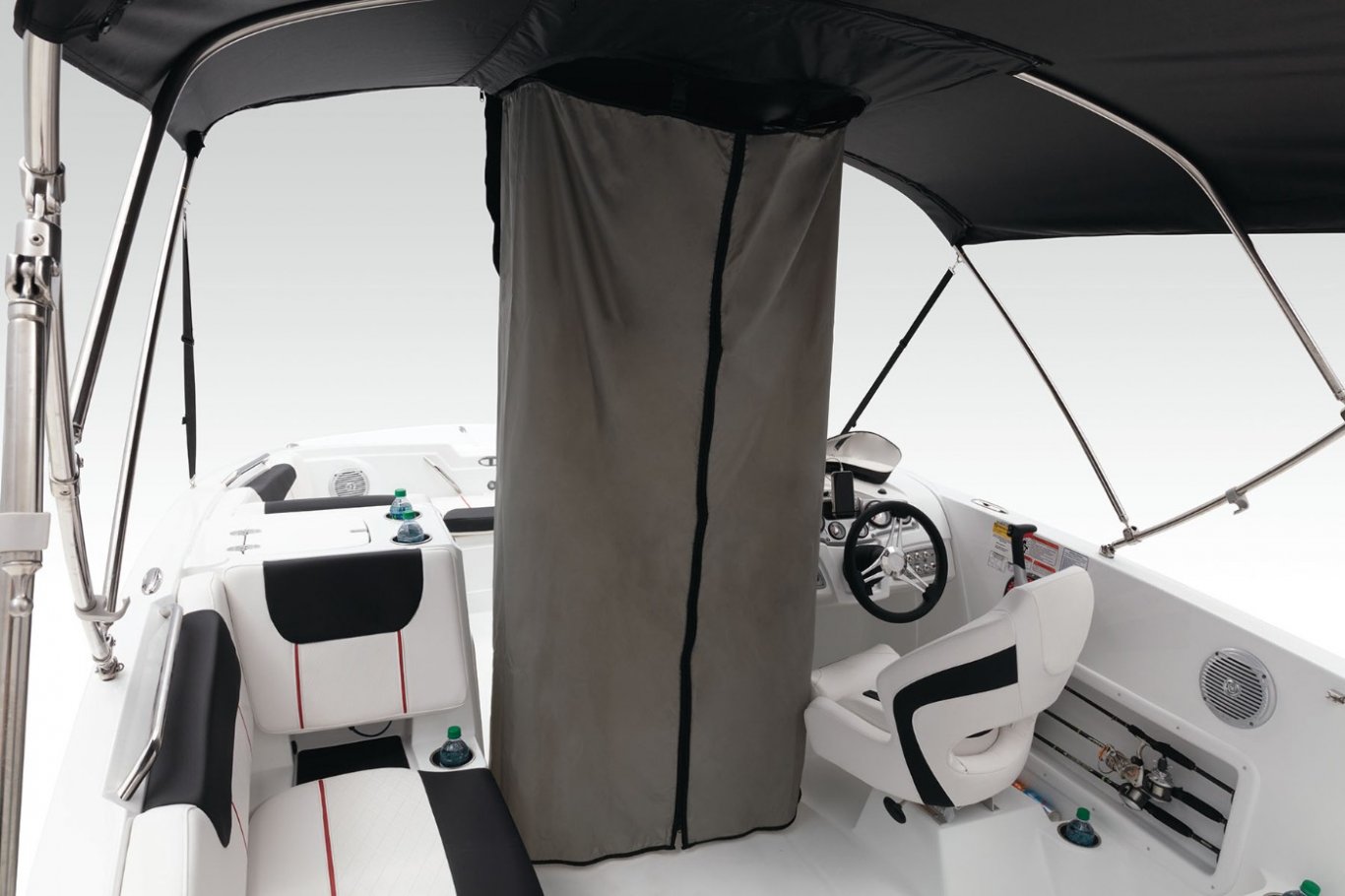 Escape the sun and keep your cool with the standard Bimini top. A drop-down changing curtain offers convenience and privacy. |