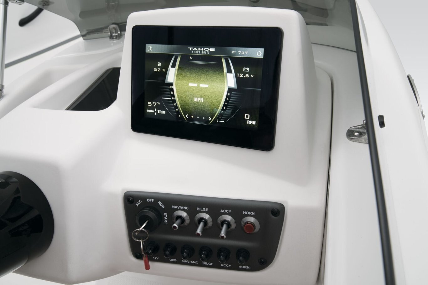 TAHOE CRUISE™ digital touchscreen dashboard featuring a 7” (17.78 cm) multi-color & waterproof display w/high brightness for easy use in direct sunlight & w/anti-glare coating