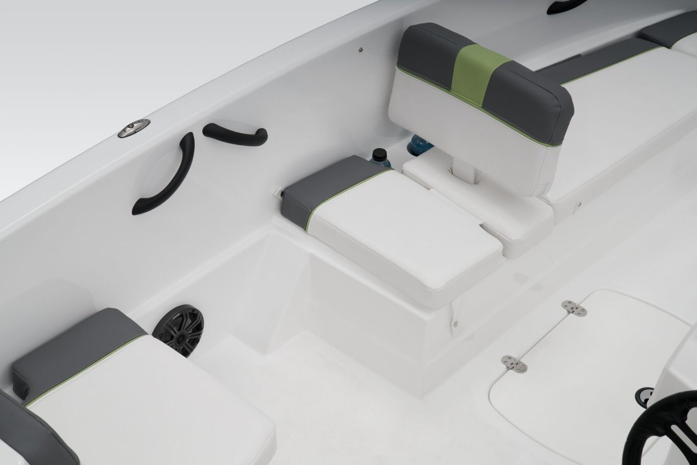 The port bow backrest can be turned to face forward or aft to cruise or watch watersports. The cushion will also flip up to reveal a step to avoid stepping on upholstery.