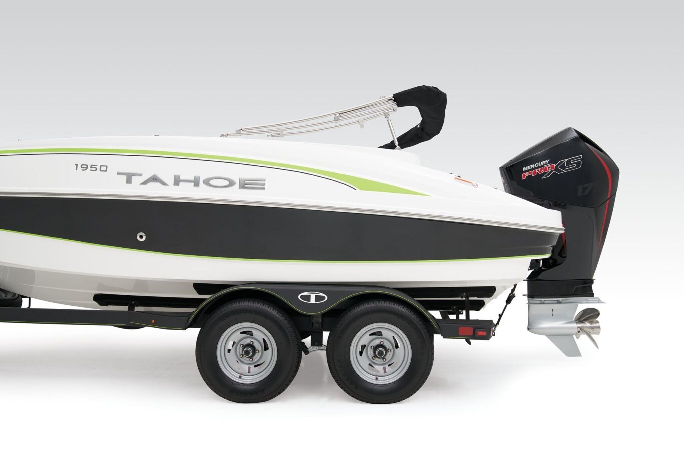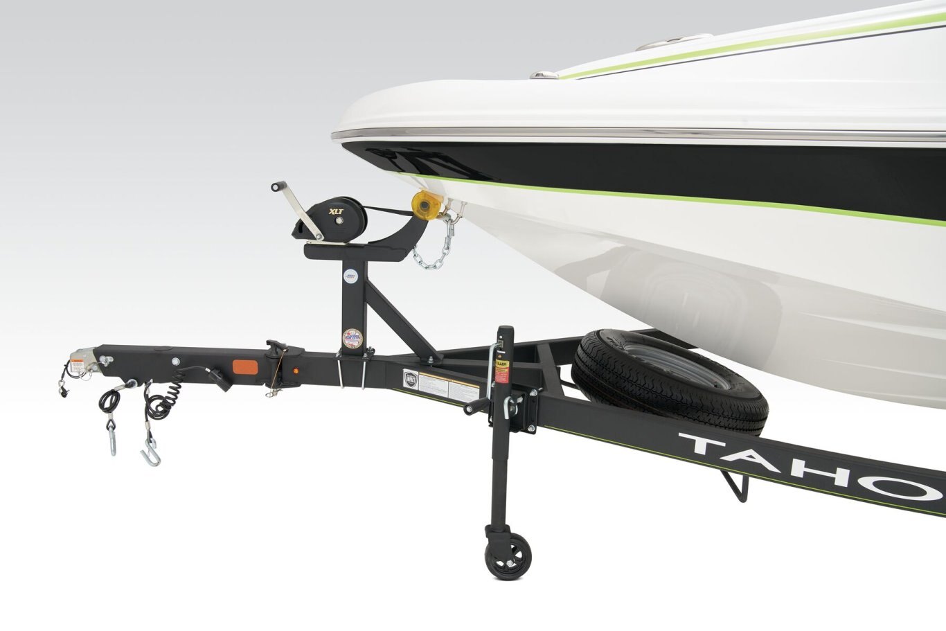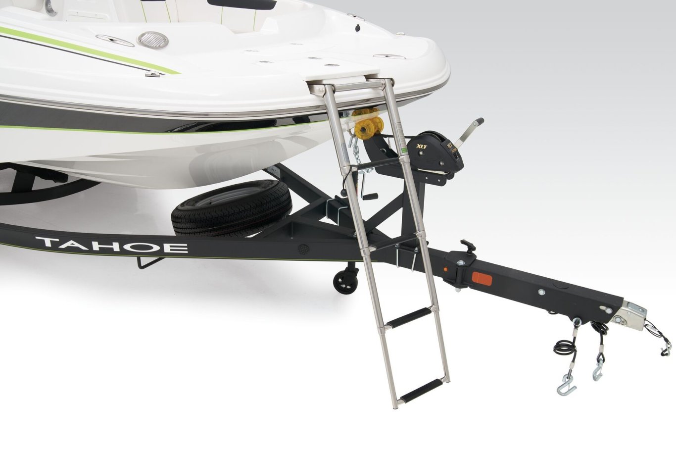Custom-fit, tandem-axle trailer w/GALVASHIELD® Impact corrosion protection, brakes on both axles & spare tire - includes 14" (35.6 cm) tires, fold-away tongue jack, space-saving, swing-away tongue, heavy duty winch w/nylon strap & bow safety strap, safety cables & LED submersible lights (additional freight charge applies for standalone trailer purchase)