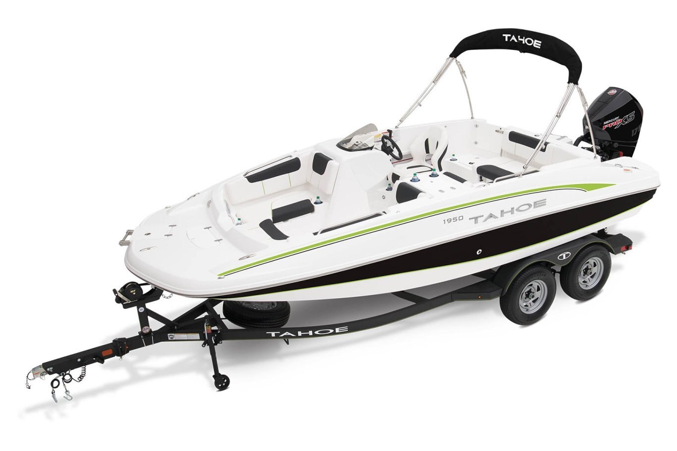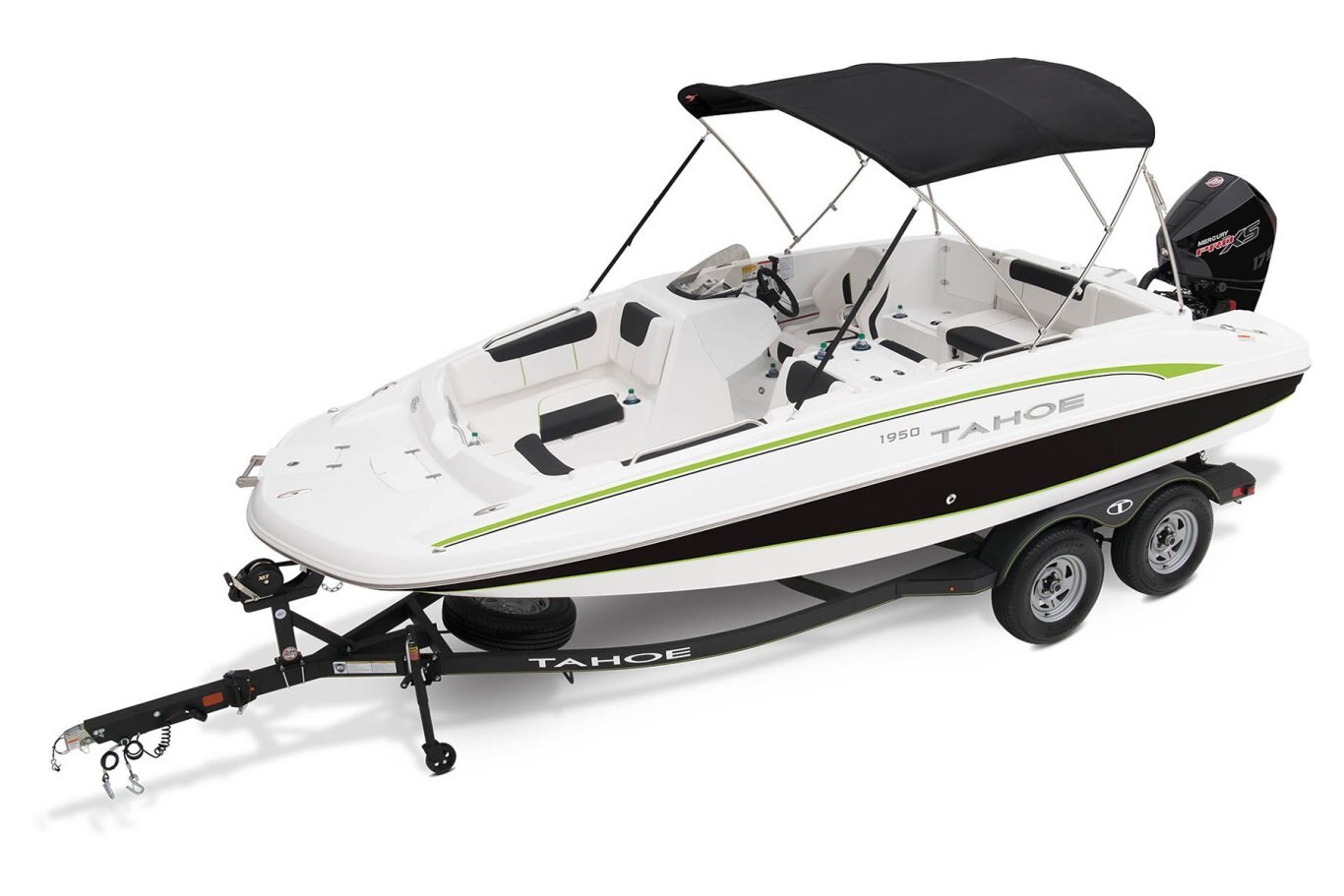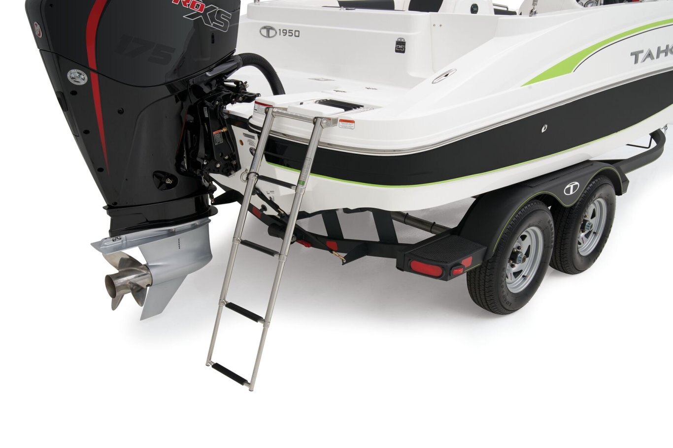 Custom-fit, tandem-axle trailer w/GALVASHIELD® Impact corrosion protection, brakes on both axles & spare tire - includes 14" (35.6 cm) tires, fold-away tongue jack, space-saving, swing-away tongue, heavy duty winch w/nylon strap & bow safety strap, safety cables & LED submersible lights (additional freight charge applies for standalone trailer purchase)