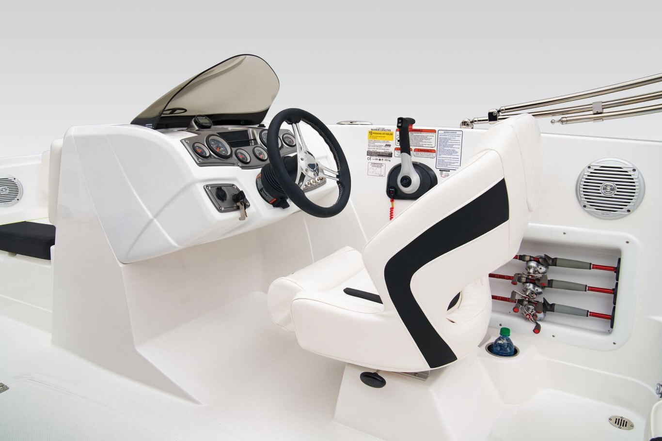 CONSOLE Acrylic windscreen Toggle switches Digital depth sounder Stereo w/Bluetooth®, MP3 & USB input & 4 speakers Sport steering wheel Mobile phone holder w/12V outlet