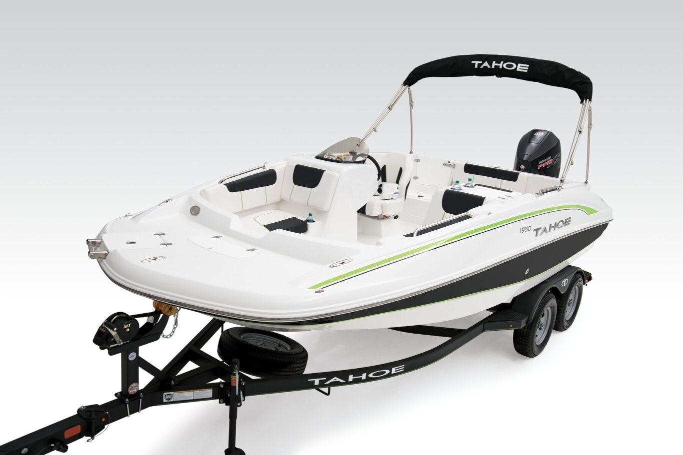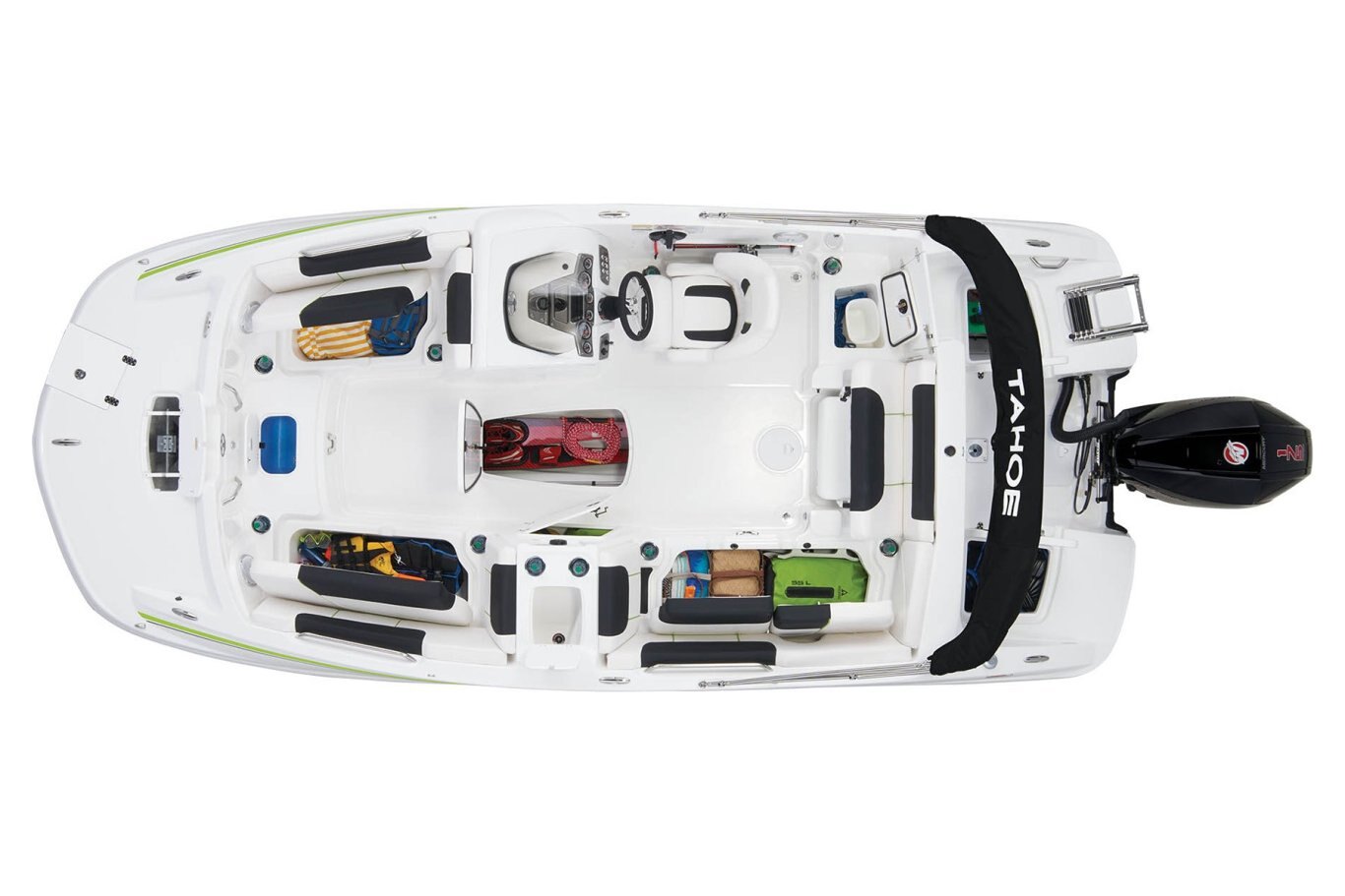 The TAHOE® 1950 deck boat lets you experience summer the right way—on the water with family and friends in bountiful luxury with exhilarating performance.