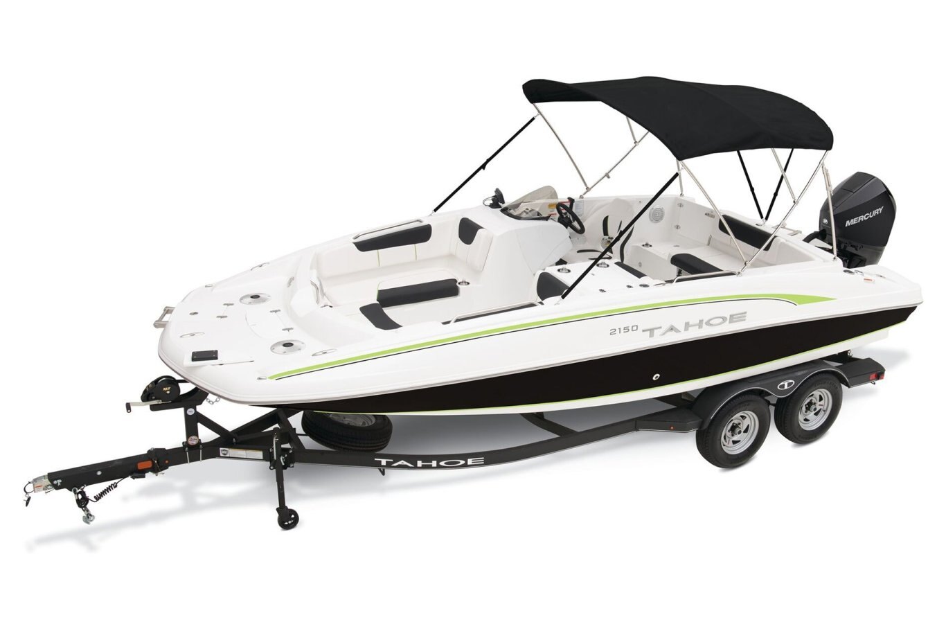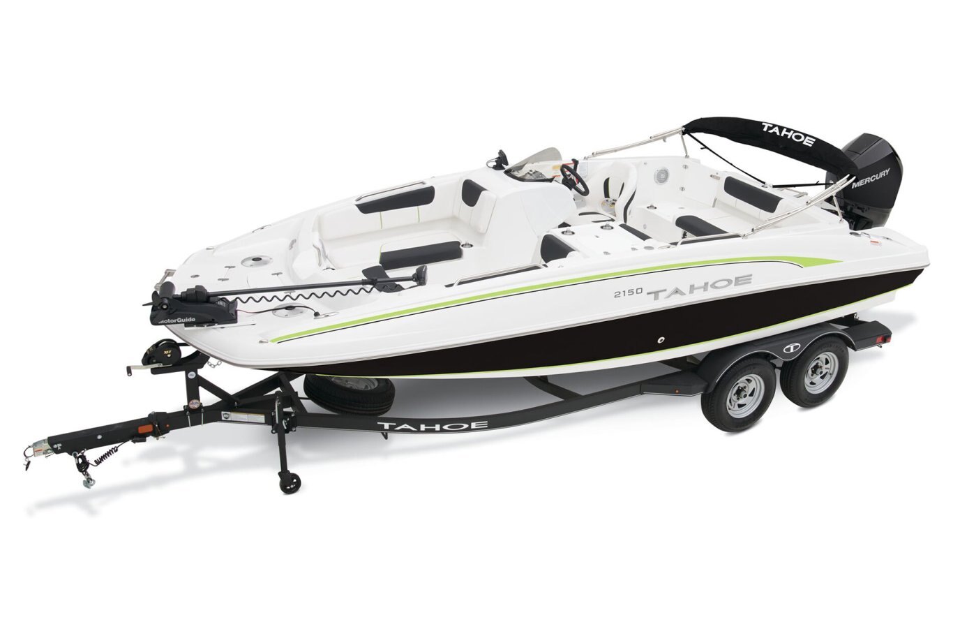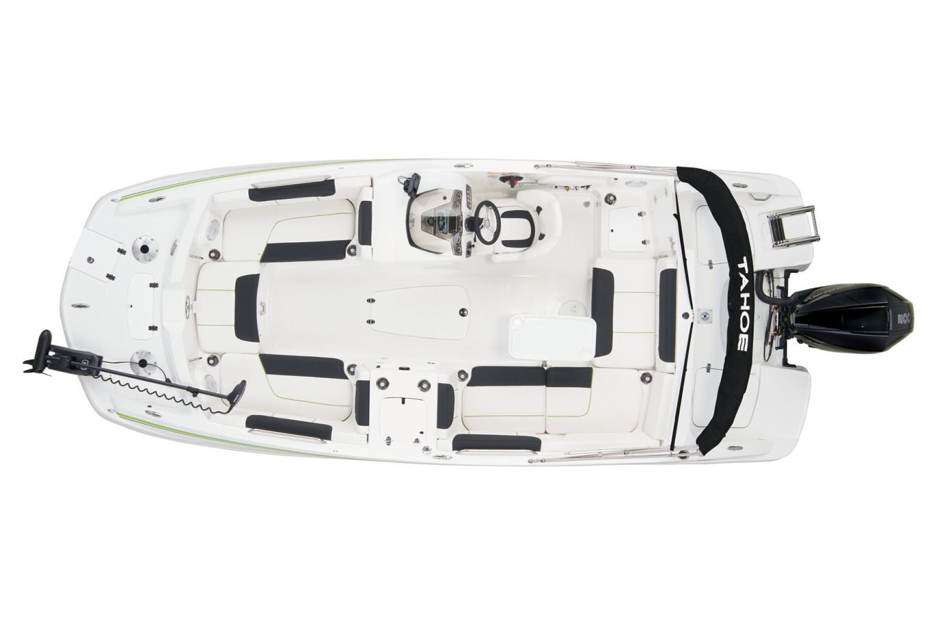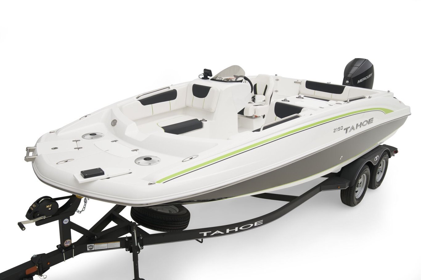 Whether you’ve got a big crew of lake lovers or just want some extra space to relax, the TAHOE® 2150 is the perfect size and has vibrant features, performance and capability. Every inch of the 21’ hull is packed with advantages for watersports, fishing, or just cruising around. A wide-open layout caters to skiing, tubing, fishing and more. Twin swim decks are ideal for lounging, casting a line or taking in the view. Soft, durable marine-grade vinyl upholstery stays cool and dries quickly while offering loads of comfort. Huge underseat storages complement the dedicated anchor locker, livewell, ski pylon stow, rod holders, trolling motor plug, and in-hull ski storage. An available Fishing Package option means you’ll be expertly equipped to go toe-to-fin with your species of choice. Whatever you’re up for, the 2150 truly makes the most of it. |