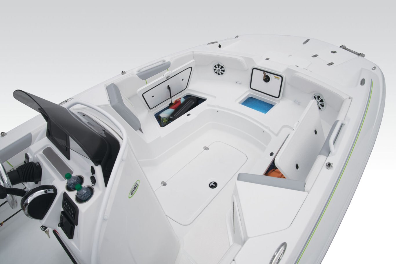 Whether you’ve got a big crew of lake lovers or just want some extra space to relax, the TAHOE® 2150 is the perfect size and has vibrant features, performance and capability. Every inch of the 21’ hull is packed with advantages for watersports, fishing, or just cruising around. A wide-open layout caters to skiing, tubing, fishing and more. Twin swim decks are ideal for lounging, casting a line or taking in the view. Soft, durable marine-grade vinyl upholstery stays cool and dries quickly while offering loads of comfort. Huge underseat storages complement the dedicated anchor locker, livewell, ski pylon stow, rod holders, trolling motor plug, and in-hull ski storage. An available Fishing Package option means you’ll be expertly equipped to go toe-to-fin with your species of choice. Whatever you’re up for, the 2150 truly makes the most of it. |