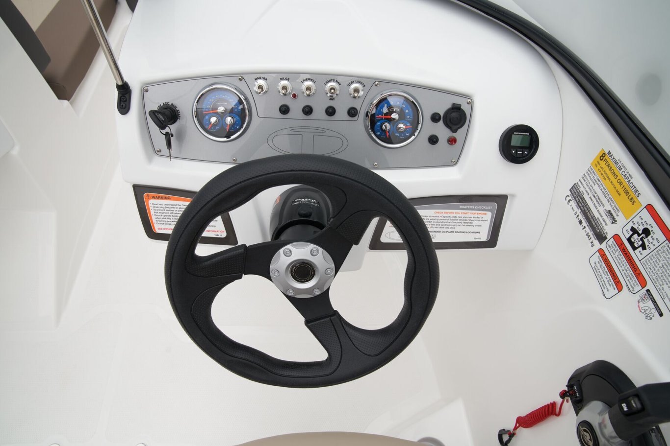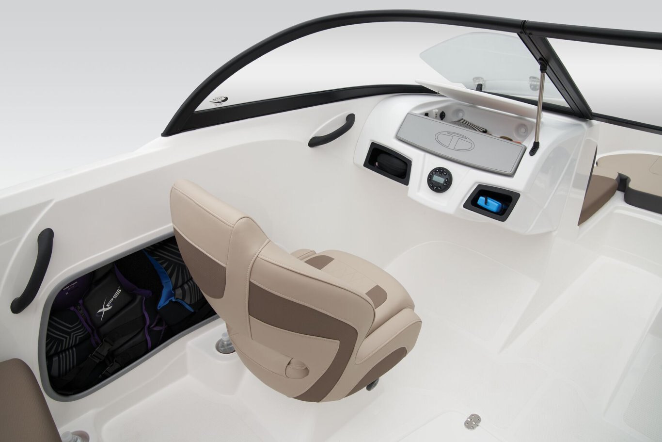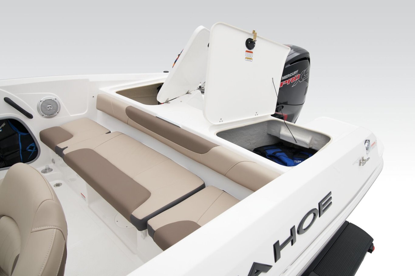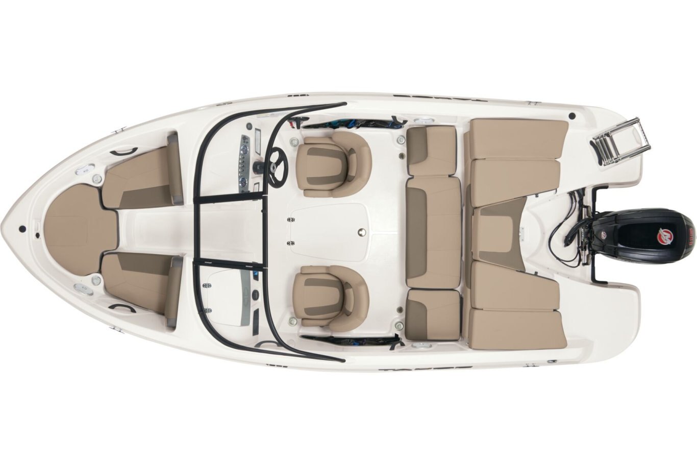 The 185 S is an affordably luxurious runabout boat with room for up to 8 passengers. Kick back and relax in the front deck’s dual seats, the swiveling driver and passenger bucket seats, or the aft bench seat. An in-floor compartment holds your wakeboard or skis. You'll find extra storage under this sport boat's seat cushions. Take hold of the SeaStar® hydraulic steering wheel and feel the engineering performance of the POWERGLIDE® hull design with HYDROSTEP strakes.