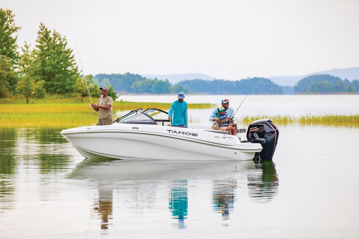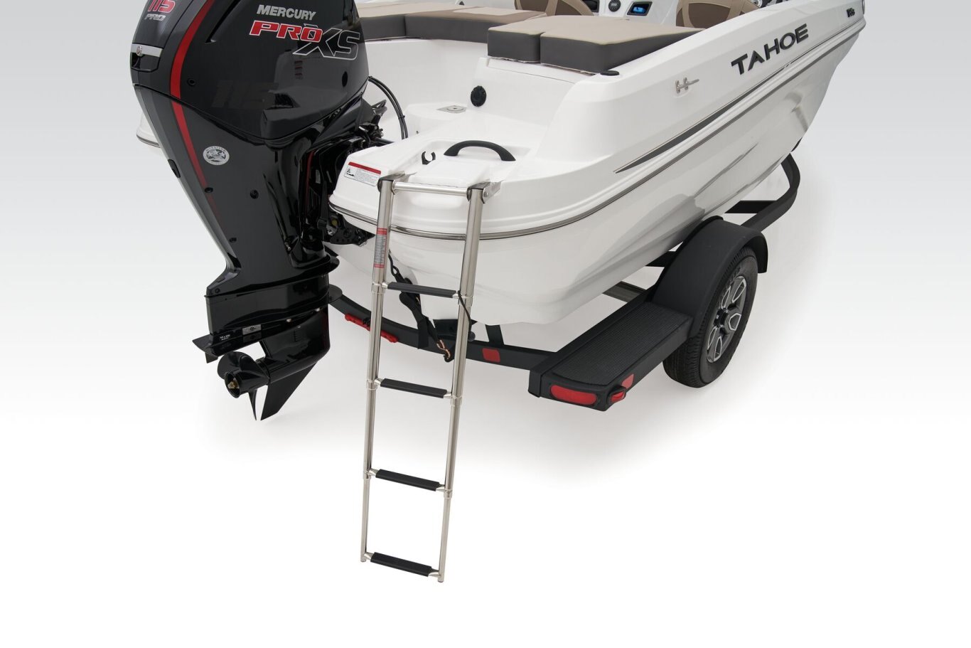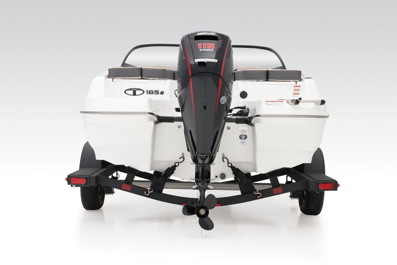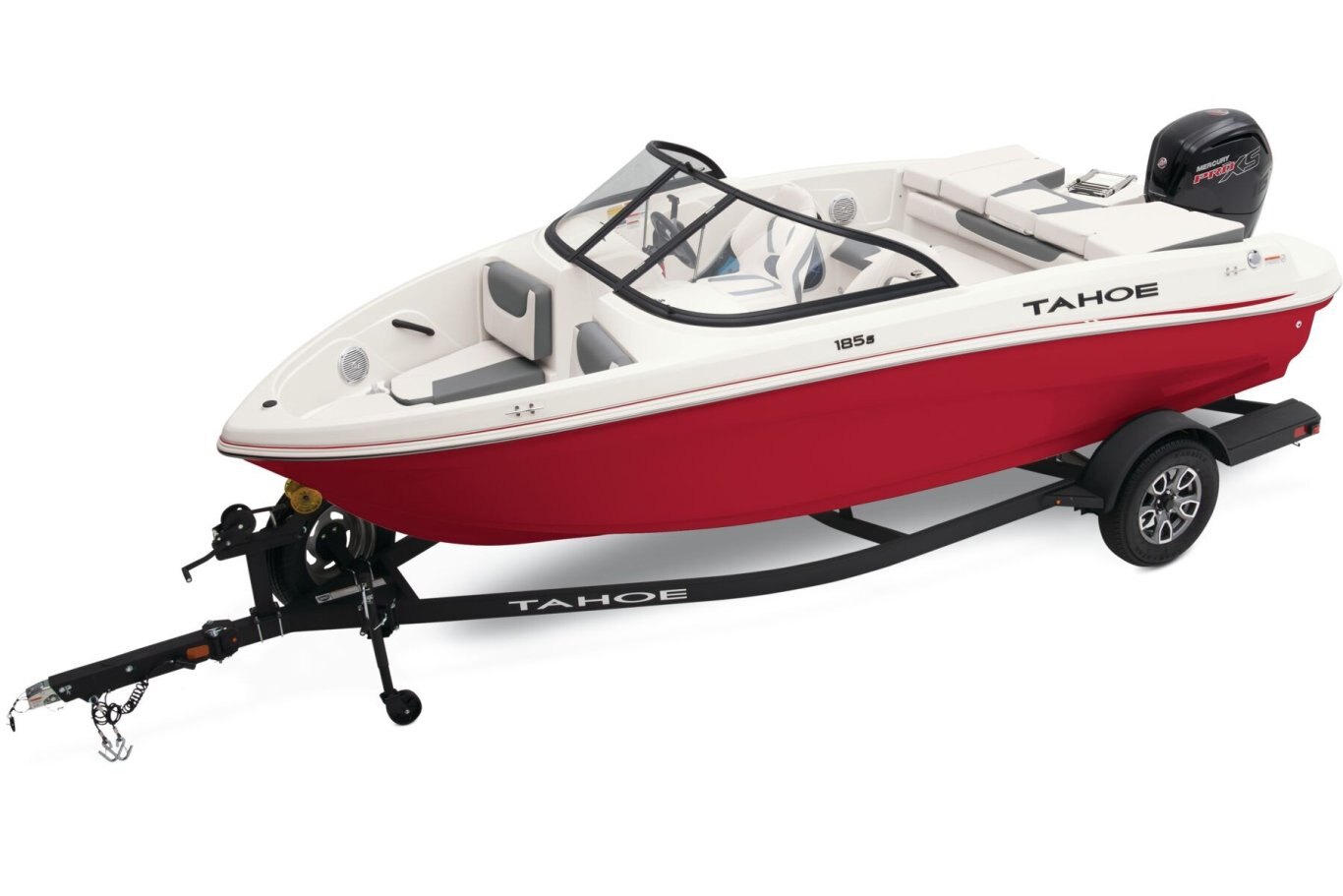 The 2025 TAHOE® 185 S comes standard with a 115hp Mercury® EXLPT Pro XS® FourStroke outboard motor and has a recommended maximum 150hp rating. This model is packaged with a trailer.
