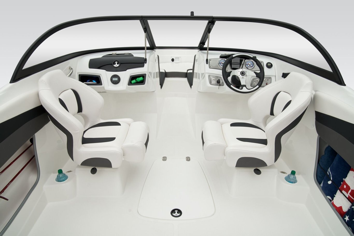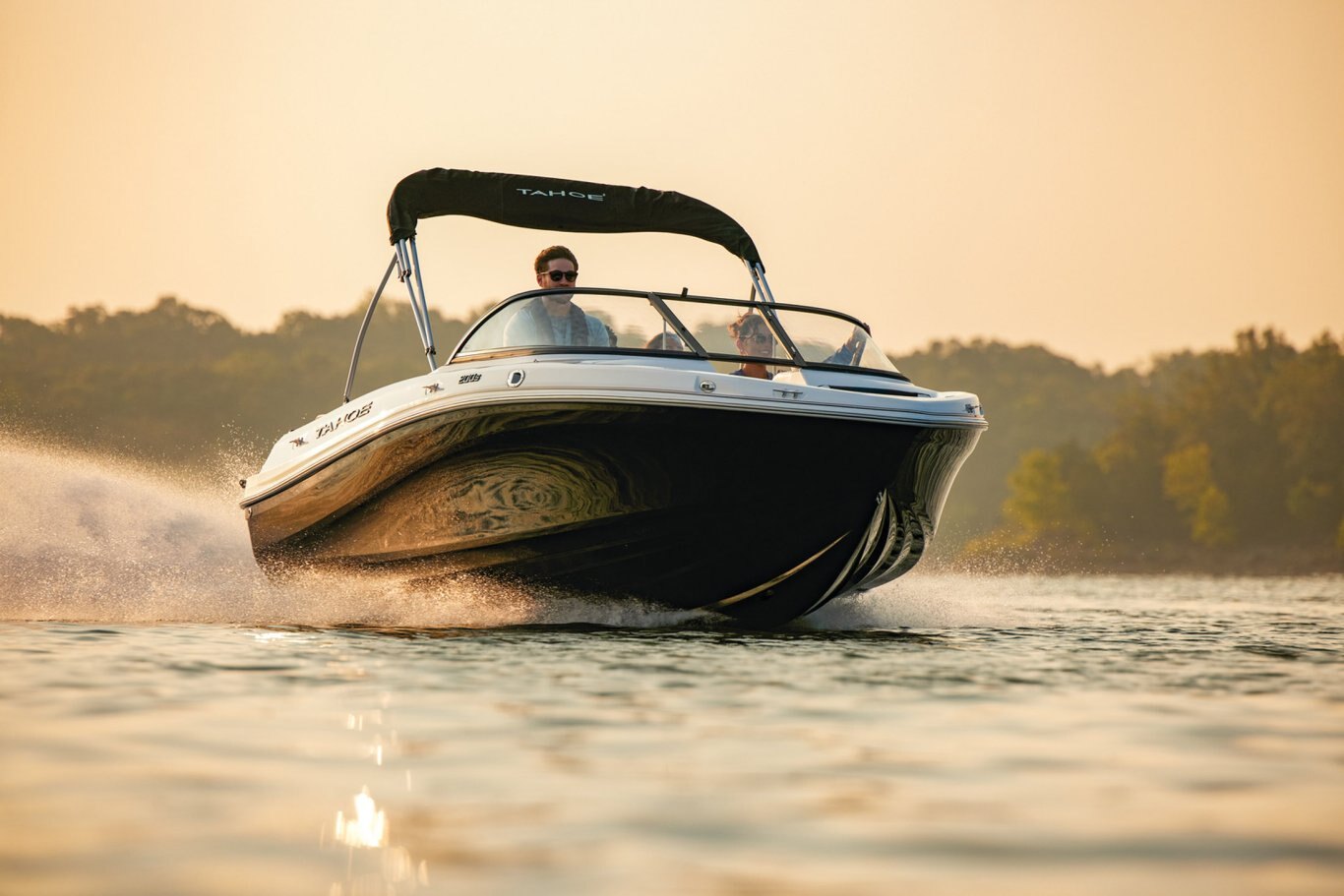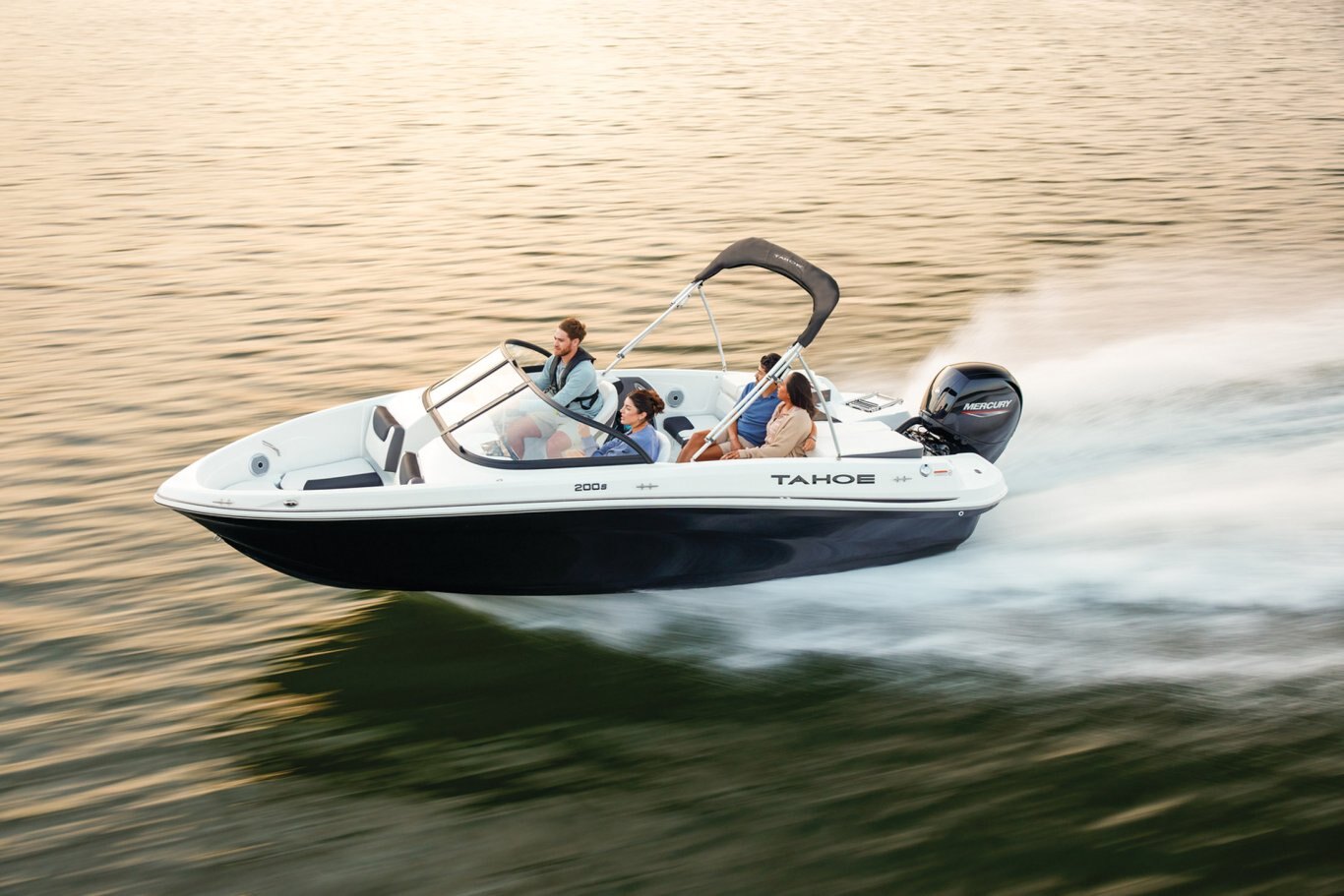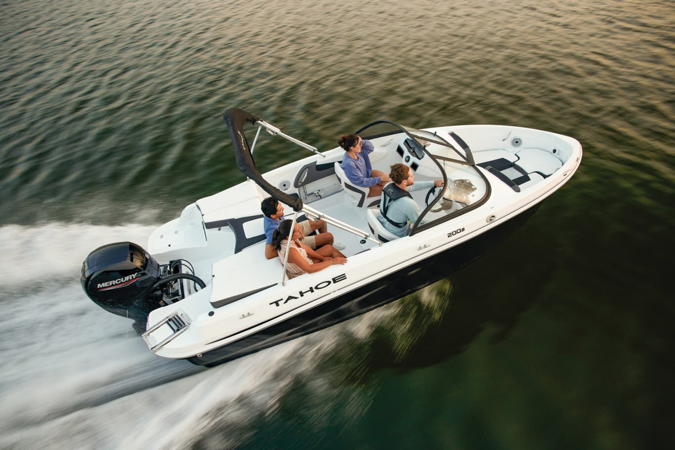 Fish and ski sunny days away in the 2025 TAHOE® 200 S! This performance-designed boat has everything lake adventurers need to explore the waters the way they like. Pilots can take control with the cockpit's hydraulic steering, precision gauges, water-resistant toggle switches, and hidden storage. Go full throttle to experience the POWERGLIDE® hull's HYDROSTEP strakes. Up to 8 passengers can enjoy the ride in this TAHOE's dual front-deck seats, swiveling driver and passenger seats, and rear bench seat. Find your swimming hole and relax on the full-length aft sundeck with cushions that pull away to reveal hidden storage compartments—a feature shared by the other seats. Anglers will love the 10-gal. aerated livewell with an adjustable spray head. Thrill seekers can pull their wakeboard or skis from the in-floor storage compartment and ready the ski-tow pylon in a flash. Or, you can simply enjoy the water on the aft port and starboard swim platforms with a fold-down reboarding ladder. This fun-focused model sports a Jensen® stereo with 4 speakers and Bluetooth® connectivity. The 2025 TAHOE® 200 S comes standard with 115hp Mercury® EXLPT FourStroke outboard motor and has a recommended maximum 175hp rating. This model is packaged with a trailer. |