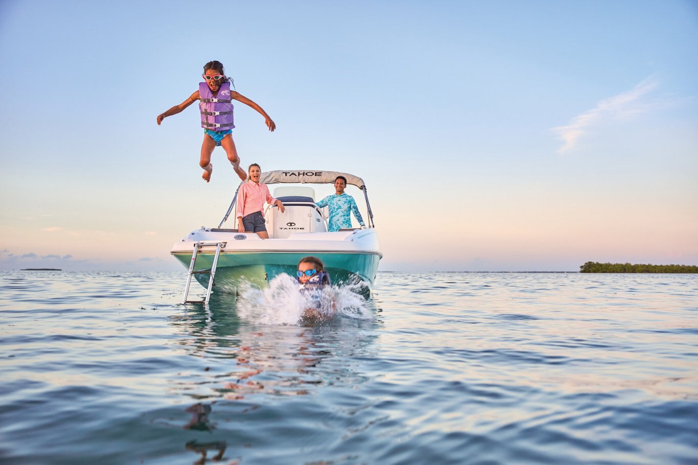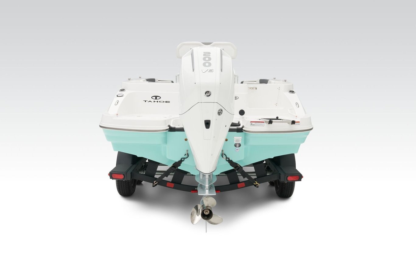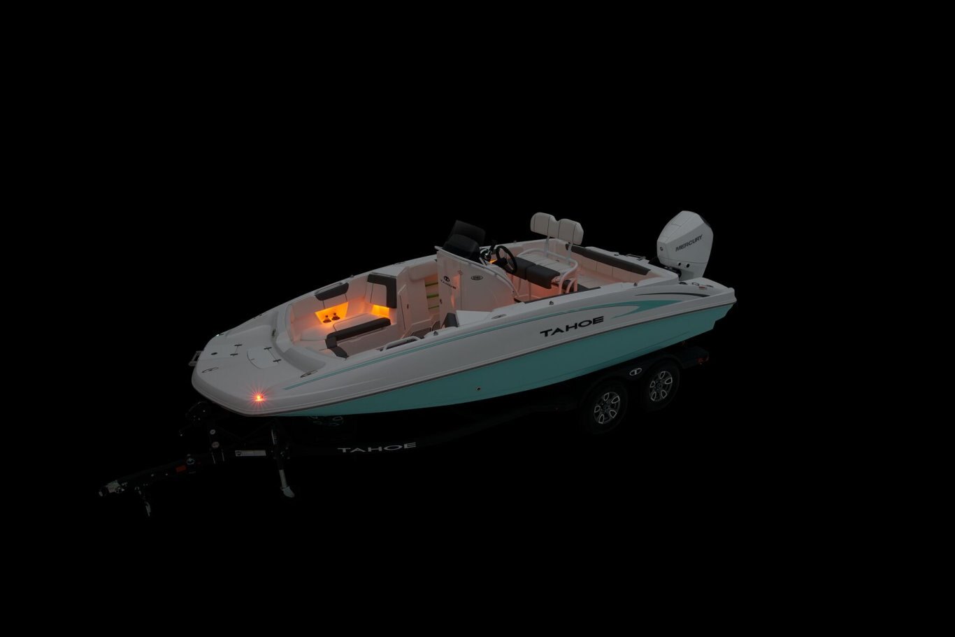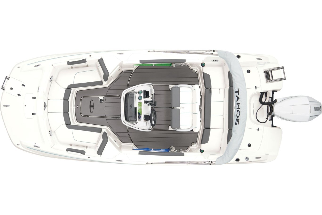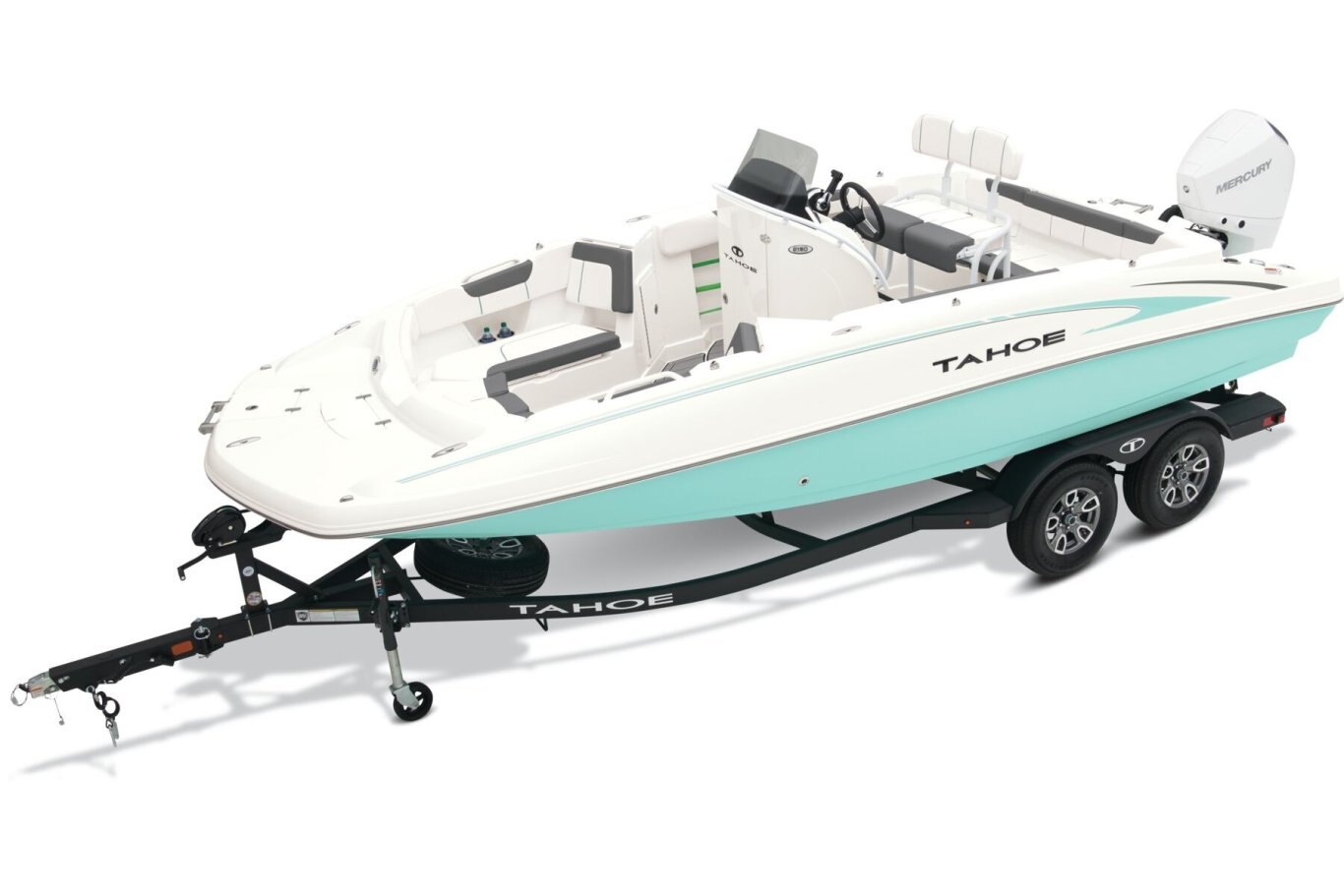 Get the best of all worlds with the 2025 TAHOE® 2150 CC. This powerful deck boat has much to give to anglers, watersport athletes, and lake-life cruisers looking to get away. Its centralized helm boasts an 8" touch screen, a digital switch panel, and hydraulic steering. It's placed before a versatile leaning post with flip-up bolsters and a removable backrest that's hiding fishing rod holders. You'll also find under-gunnel rod holders that can carry up to 6 combos. Speaking of fishing, this boat has plenty to offer anglers, such as two 84-qt. insulated compartments for fish boxes and coolers, a 17-gal. aerated livewell, and an optional fishing package that adds plenty more exciting features. Relax in luxurious comfort in the wraparound bow seating, aft lounge area, and swim platforms on either end of the boat. Both platforms feature folding ladders to make reboarding easier. The available ski-tow pylon and center storage compartment are built for high-octane watersports. Create the ultimate hangout with the standard retractable bimini top and 4-speaker stereo with Bluetooth® compatibility. The 2025 TAHOE® 2150 CC comes standard with a 150hp Mercury® XL Pro XS® FourStroke outboard motor and has a recommended maximum 225hp rating. |