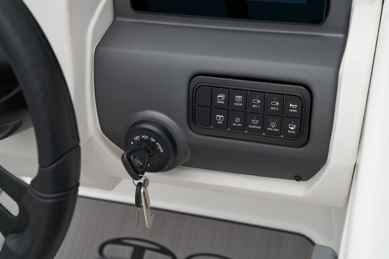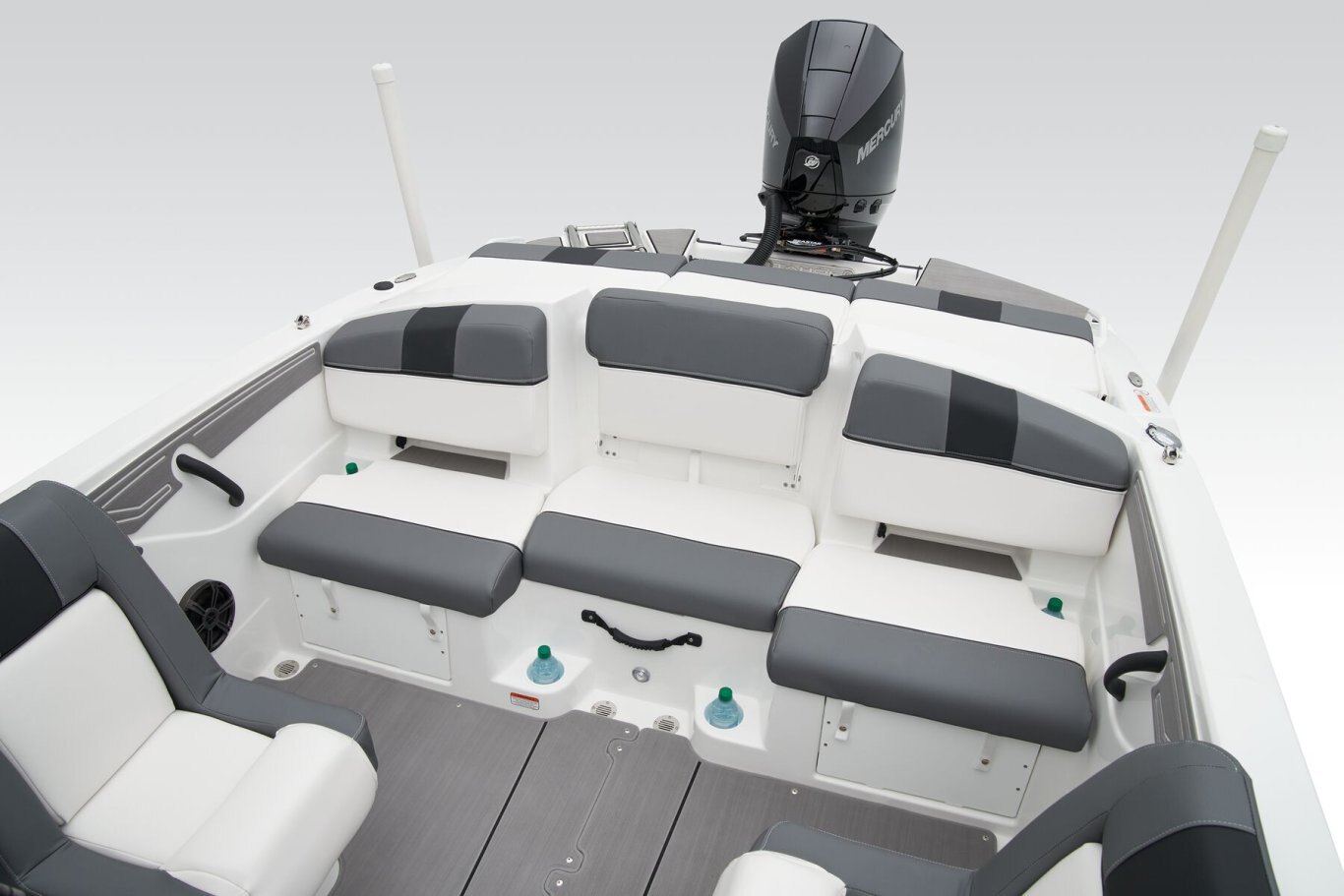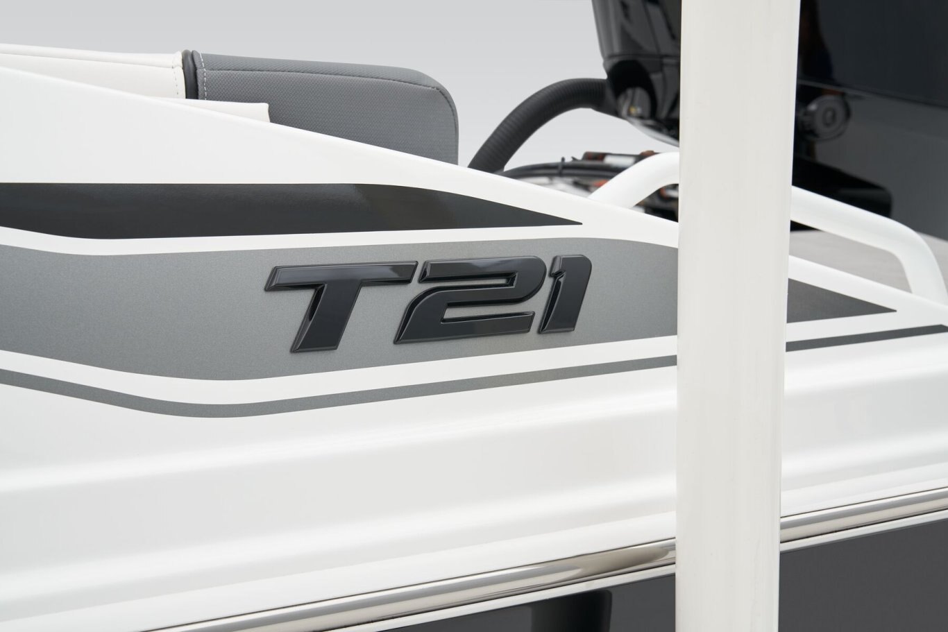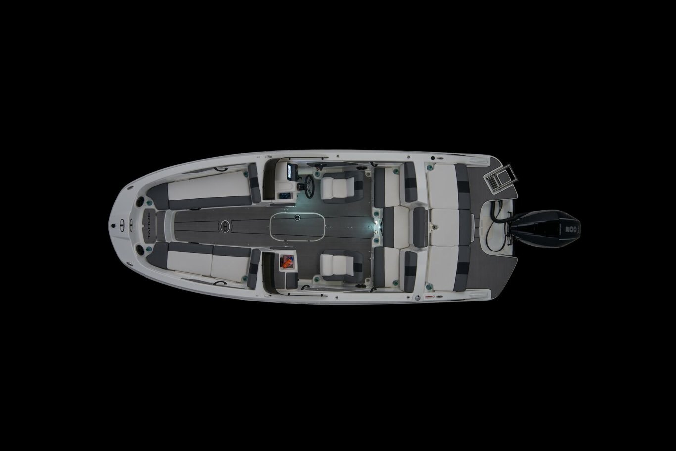 Up to 11 passengers can feel the thrill thanks to the T21’s POWERGLIDE® hull with HYDROSTEP strakes that enhance stability and overall performance. Raise the standard removable ski-tow pylon to take on your exciting watersports. The console’s 8” touch screen with digital switches updates you with information such as your motor’s vitals, the water’s depth, and your current speed. Play DJ with the Bluetooth®-compatible Kicker® stereo. Take your places in the luxurious dual forward lounges, dual midship bucket seats, and the aft 3-across bench. You’ll find space for your gear and supplies under the seats and sun-pad cushions, consoles, and the in-floor storage compartment. When you’ve found a cove you want to explore, the anchor locker, dual aft swim platforms, and telescoping ladder make diving into the waters and getting back into the boat easy. The 2026 TAHOE® T21 comes standard with a 150hp Mercury® XL Pro XS® FourStroke outboard motor and has a recommended maximum 200hp rating. This model is packaged with a trailer. |