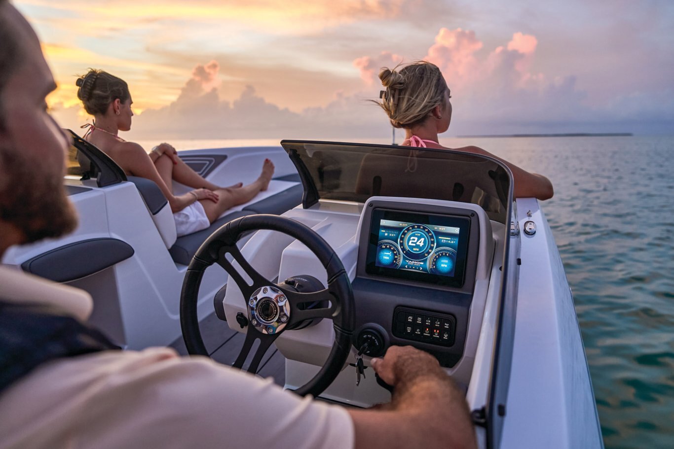 This standard 8” multifunction LCD touchscreen display with digital switches keeps you in the know about your outboard’s health and performance and reads the water depth and your speed. Replacing the gauge cluster the ultrabright screen is readable in any light.