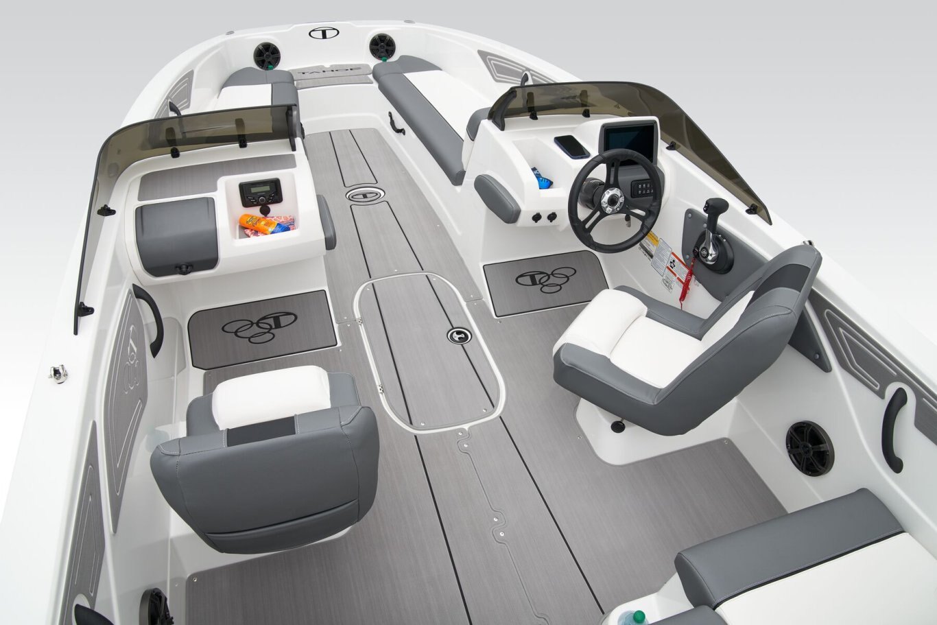 • Bow seating w/molded-in storage & insulated cooler compartment w/overboard drain