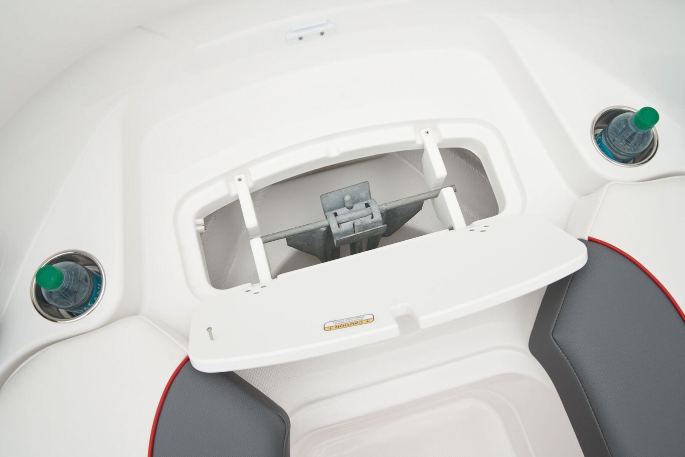 Reboarding the 210 S is as easy as flipping out the telescoping stainless steel four-step ladder and climbing aboard. |