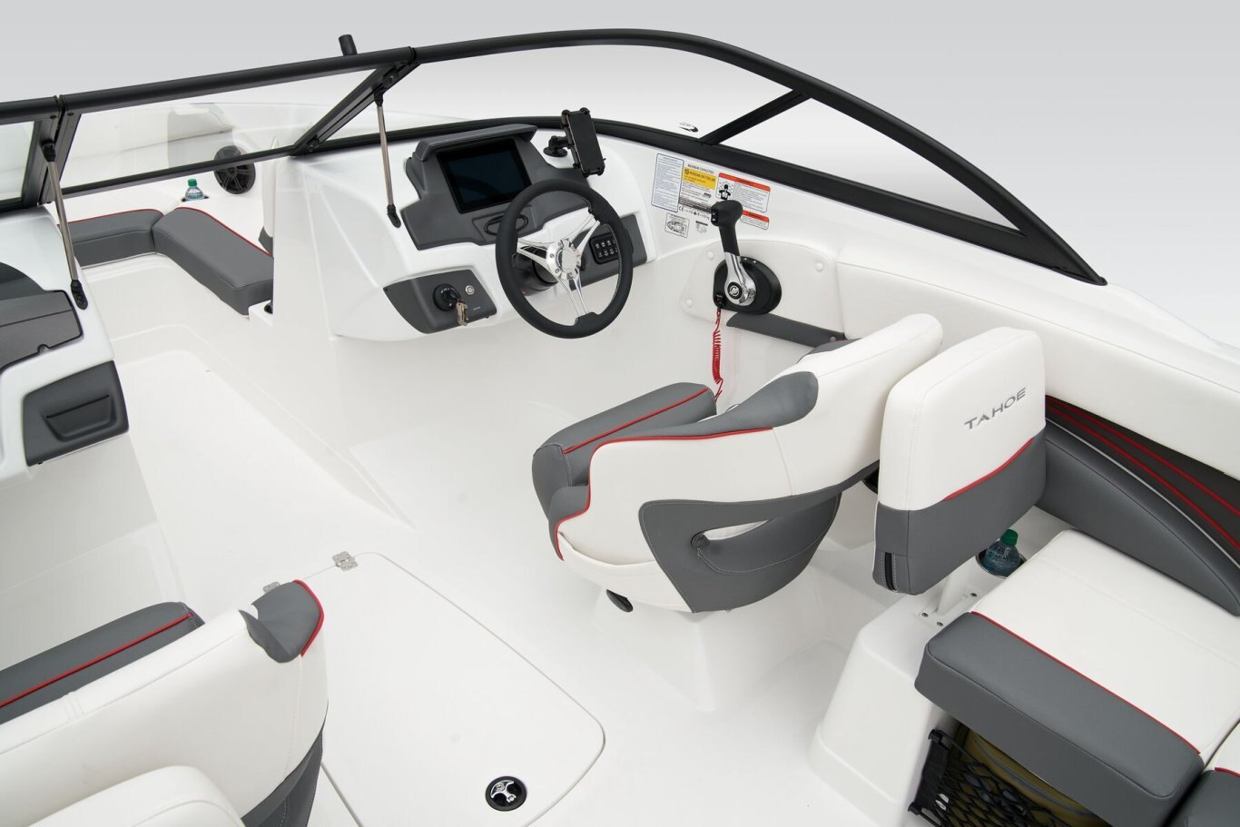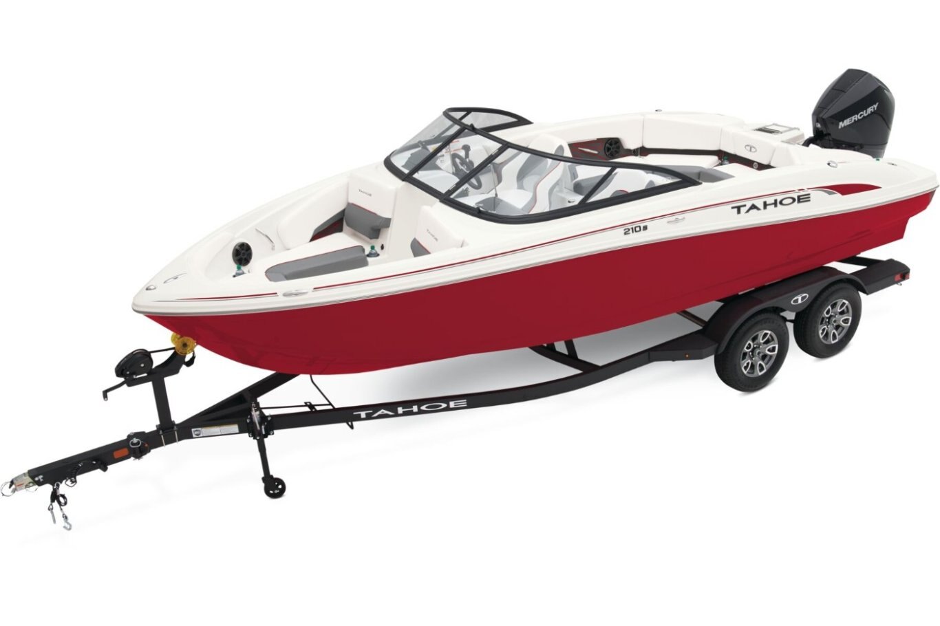 Up to 10 passengers can enjoy the ride in this year's TAHOE® 210 S. The deluxe aft U-lounge, swiveling midship seats, and front deck offer plenty of room to soak up the sun. Clever under-seat storage spaces allow you to stow everything you need for today's adventure. Take control of the adventure through the pilot's 8" touch screen that keeps tabs on data such as speed, water depth, and motor health. A removable ski-tow pylon makes it easy to prepare your boat for watersports. When it's time to take a break, relax on the dual aft swim platforms and play the songs of the summer through the 6-speaker Kicker® stereo with Bluetooth® compatibility. When the sun goes down, the fun goes on thanks to interior LED lighting perfect for night rides. The 2026 TAHOE® 210 S comes standard with a 150hp Mercury® XL Pro XS® FourStroke outboard motor and has a recommended maximum 225hp rating. This model is packaged with a trailer. |