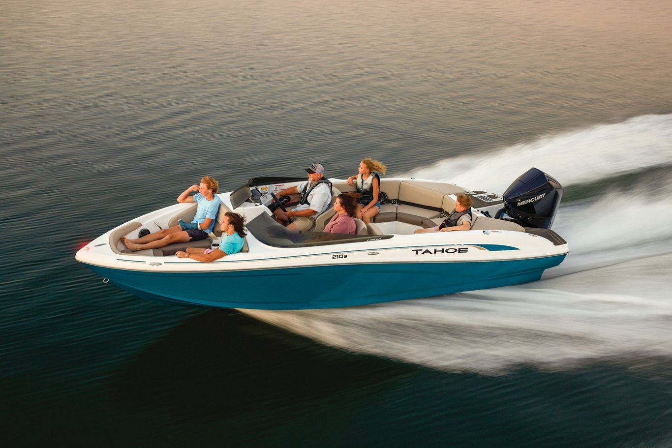 Up to 10 passengers can enjoy the ride in this year's TAHOE® 210 S. The deluxe aft U-lounge, swiveling midship seats, and front deck offer plenty of room to soak up the sun. Clever under-seat storage spaces allow you to stow everything you need for today's adventure. Take control of the adventure through the pilot's 8" touch screen that keeps tabs on data such as speed, water depth, and motor health. A removable ski-tow pylon makes it easy to prepare your boat for watersports. When it's time to take a break, relax on the dual aft swim platforms and play the songs of the summer through the 6-speaker Kicker® stereo with Bluetooth® compatibility. When the sun goes down, the fun goes on thanks to interior LED lighting perfect for night rides. The 2026 TAHOE® 210 S comes standard with a 150hp Mercury® XL Pro XS® FourStroke outboard motor and has a recommended maximum 225hp rating. This model is packaged with a trailer. |