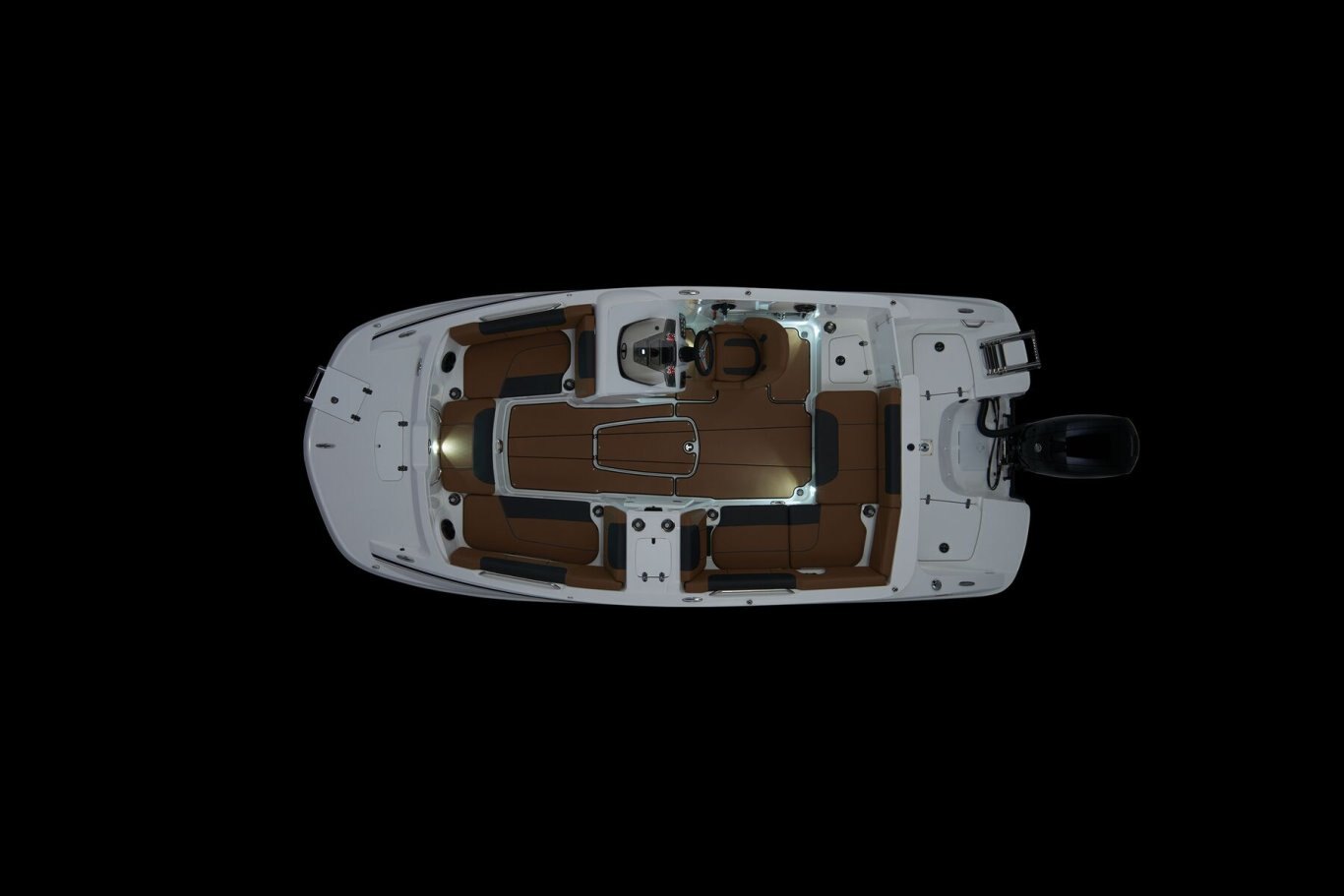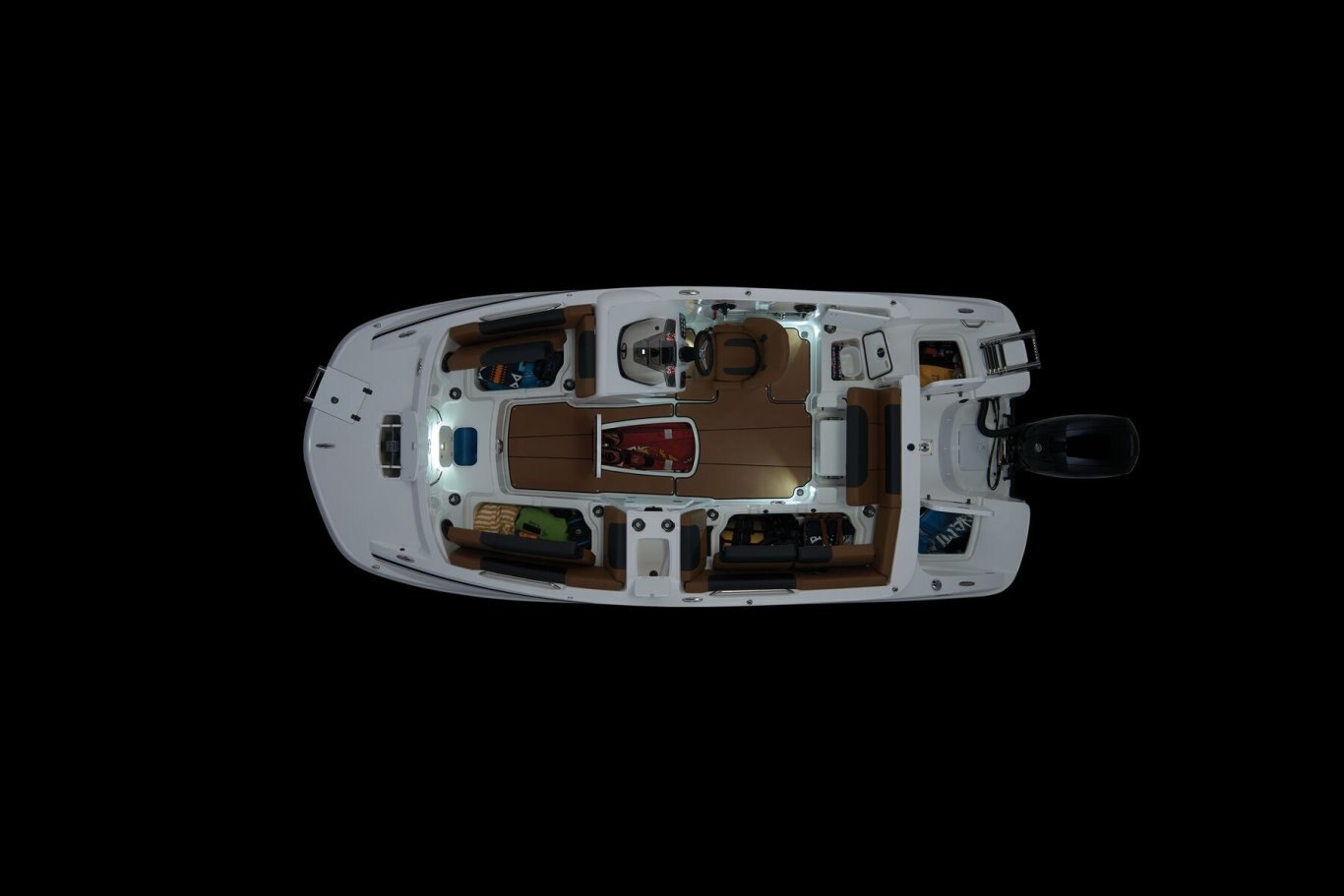 • Aft L-lounge w/storage, tow rope holder & removable 25-qt. (23.66 L) cooler