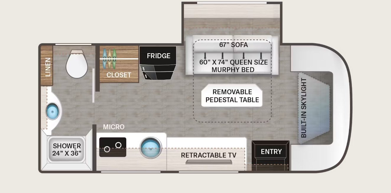 • Fiberglass Front Cap with Skylight, and Power Shade