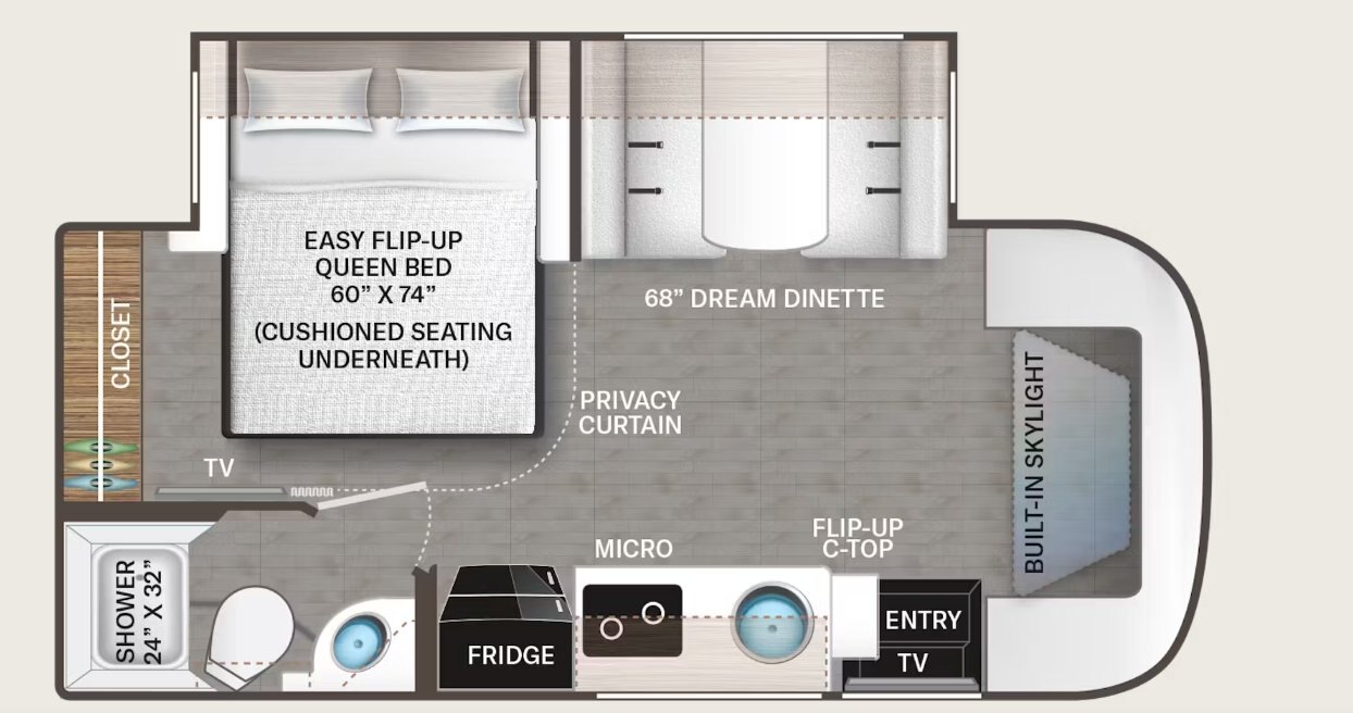 • Fiberglass Front Cap with Skylight, and Power Shade