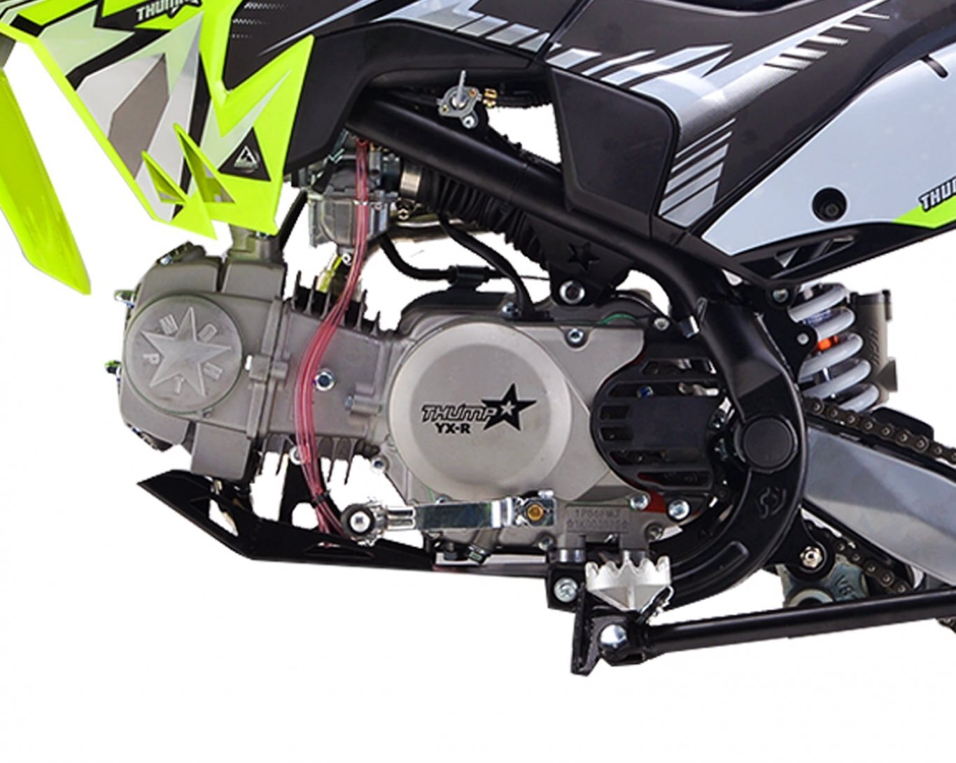 The TSR140 has received a complete overhaul for Version 5. Gone are the days of facing struggles of dealing with issues which are common on many other minibikes. We have gone back to the drawing board and scratch built a New Frame, Airbox, Linkage Suspension, Hubs and Rims, and much more. This has not only allowed our bikes to become stronger and more reliable, but also gives the rider peace of mind knowing, no detail has been left untouched. Our design team has produced a piece of engineering art. The frames are a new Quad Bar, which has made them stronger than ever. Along with the frame developments, we made space and rigged them with mounts to accommodate our new caged airboxes. This allows a better air filtration system while increasing airflow into the carburetor, and in turn, more horsepower. A first on pit bikes and minibikes alike, we have scaled down the linkage from the likes of a full-size race bike and fitted it to these smaller sized 110s. The linkage provides a much smoother ride than traditional PDS style suspension, which allows for faster cornering, high and low-speed adjustments, and increased rider comfort. We have redesigned our hubs and created space for a much heavier duty 20mm rear axle, coupled with stainless spokes and alloy rims, which provide our strongest wheels to date. Check out our description video and the following spec lists to see these upgrades! |