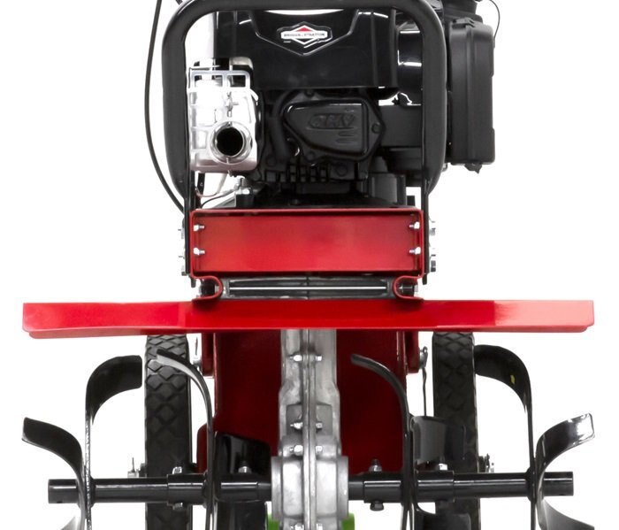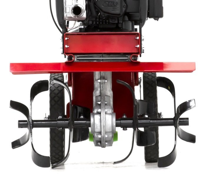 The Toro Front Tine Tiller features a two-position, heavy-duty, cast iron tail and wheel assembly. With the wheels in the forward position, transport is a breeze. In the extended position, the center of gravity is lowered for incredible control and deep-tilling performance in the row. Powered by a 163cc 4-cycle Briggs and Stratton engine, the tiller provides plenty of power to accomplish your tilling tasks. Easily adjust the tilling width with no tools required by simply adding or removing tines. The tilling width can be adjusted from 11 inches, up to 21 inches wide. With its compact frame and balanced weight distribution, allows for fluid navigation in tight growing spaces and stable pivoting capability at the end of garden rows. The airless wheels, robust forged tines, and all steel construction are all hallmarks of a tiller built to last. |