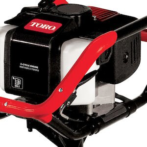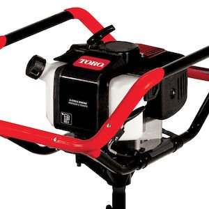 The Toro 1 or 2 Person Earth Auger Powerhead and 8 in. Auger combination will make your next landscaping project easier than ever. Powered by a 52cc 2-cycle engine, this earth auger delivers 62-foot pound of torque that can drill through any job. The welded steel handlebars protect the engine and components on the job and in transport. This versatile machine can be easily operated by 1 or 2 people to adapt to job site conditions and user experience. The Earth Auger Combo comes complete with an 8-inch auger bit featuring a fishtail point for precision hole placement and a shock absorber to reduce the kickback when encountering large rocks and roots. The auger bit also features replaceable cutting blades to significantly extend the life of your equipment.