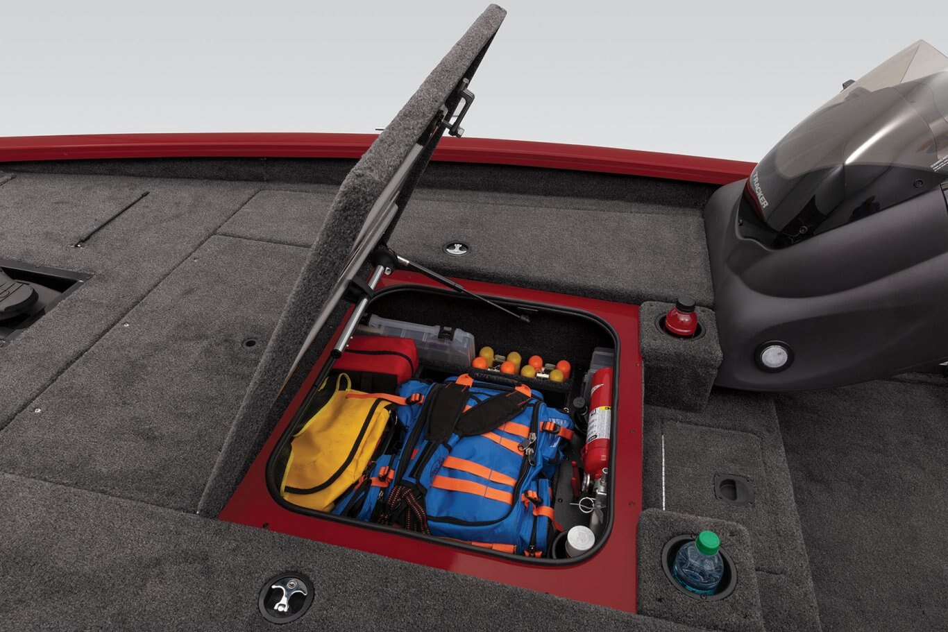 Interior - Tournament-style 32-sq.-ft. (2.97-sq.-m) elevated bow deck w/oversized dual rod boxes & center tackle organizer