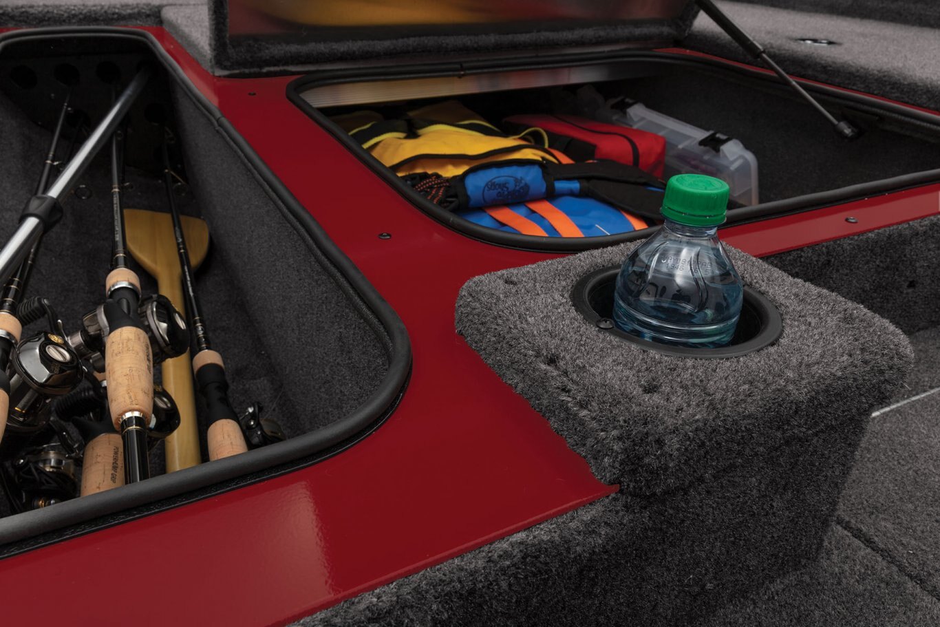 - 4 drink holders—2 on bow deck, 2 in bow tackle storage