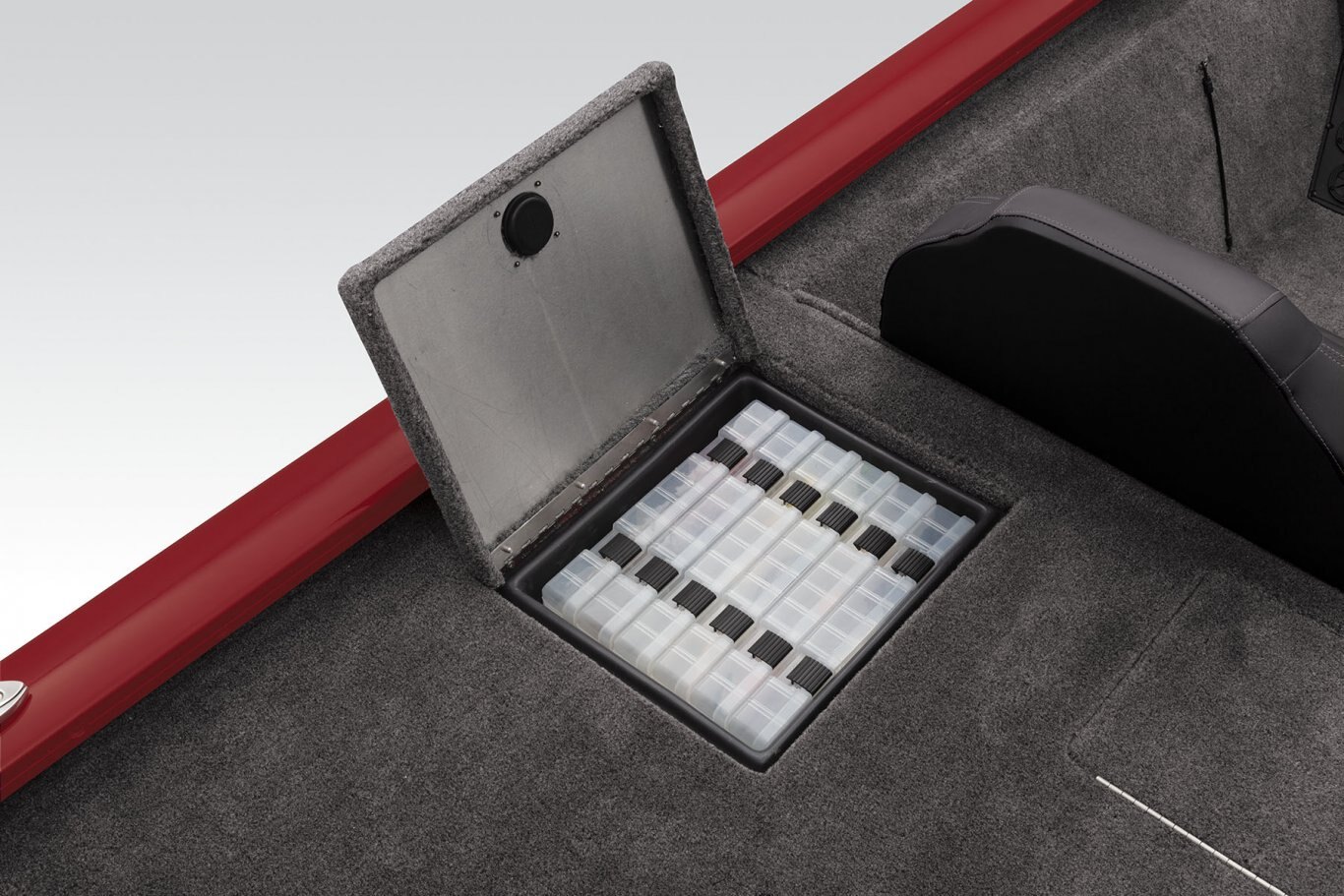 - Aft port & starboard molded storage boxes each hold six 3700 tackle boxes