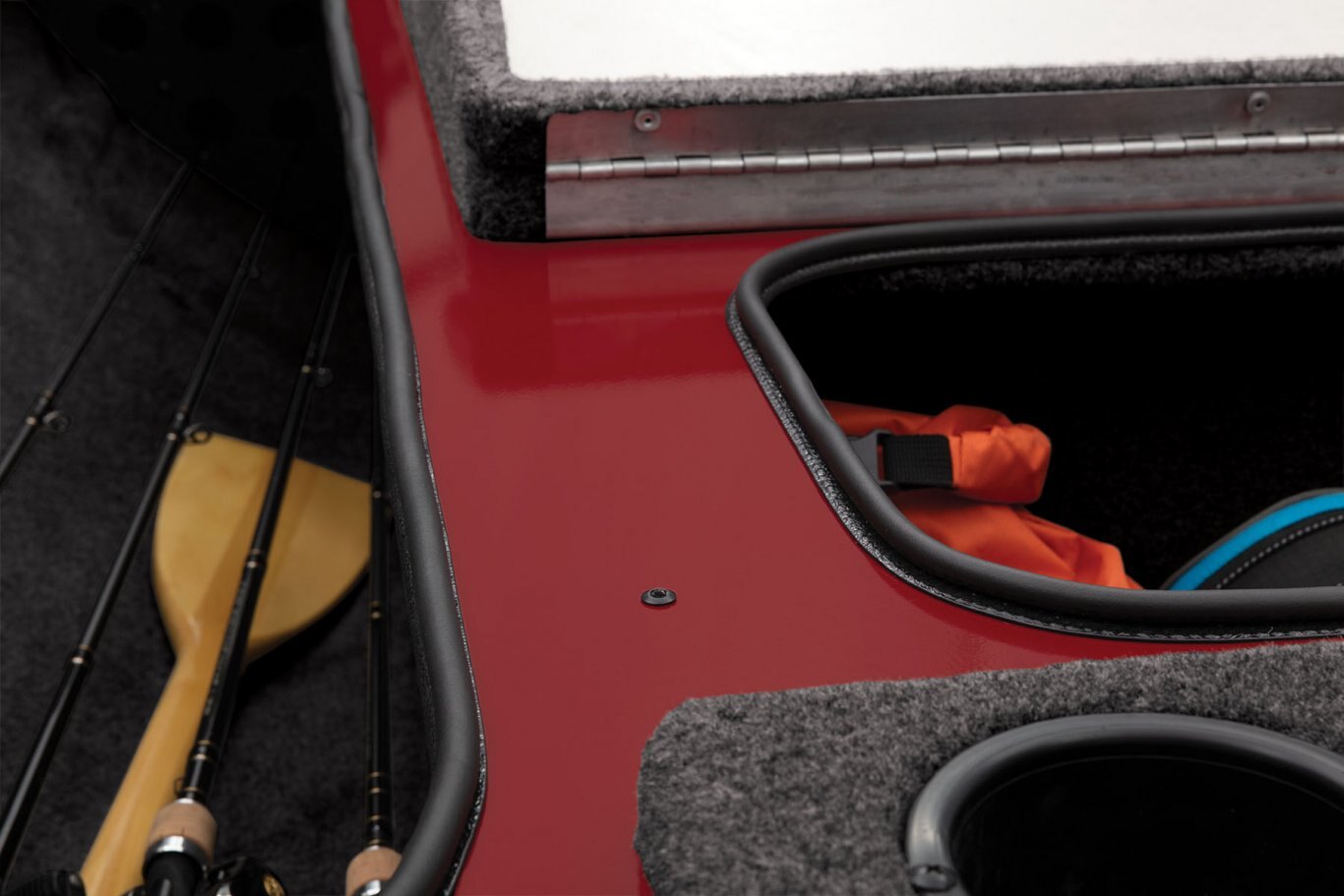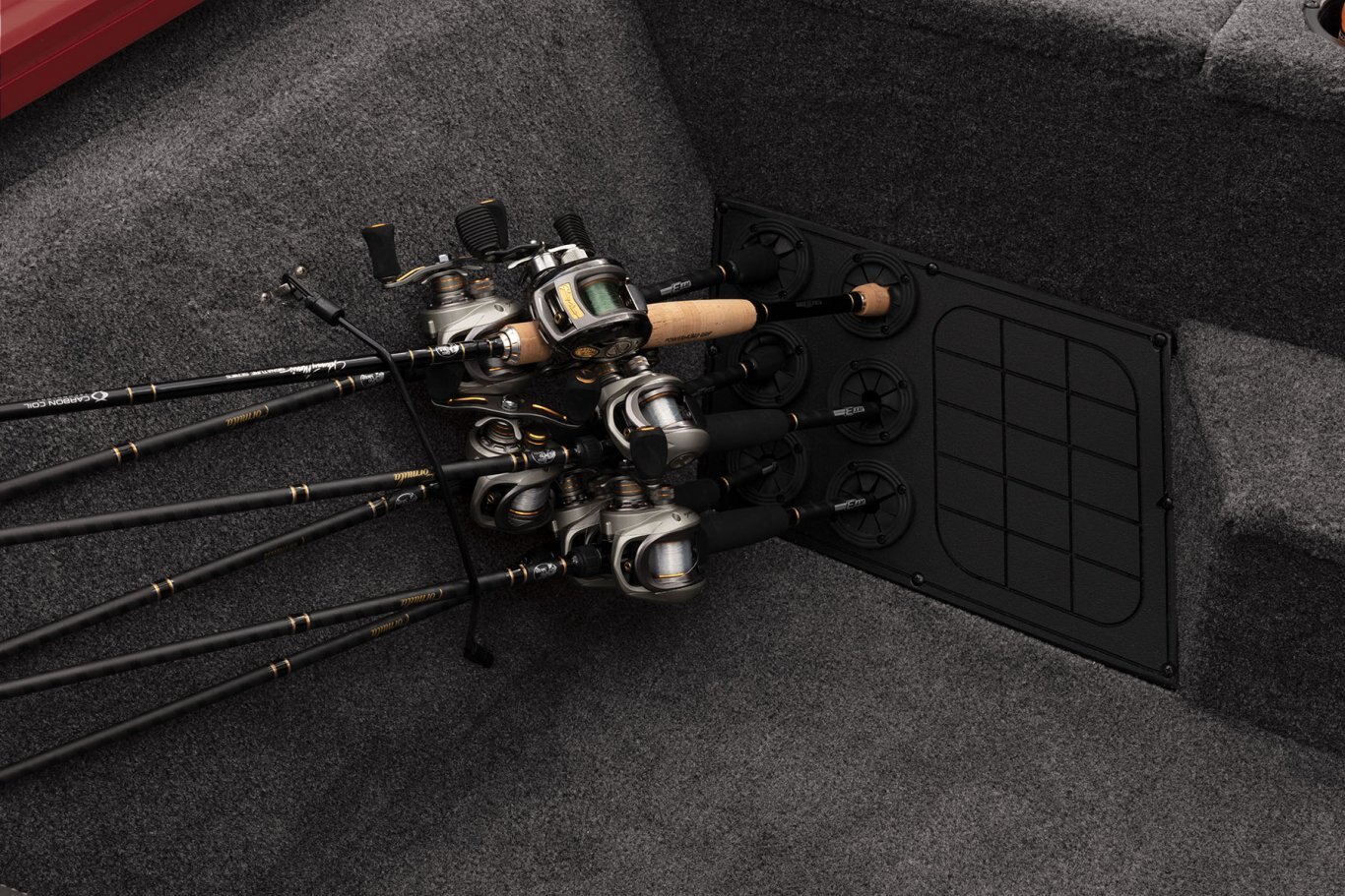 - Passenger rod storage & footrest in cockpit w/rod handle organizer & rod holder strap for 6 rods