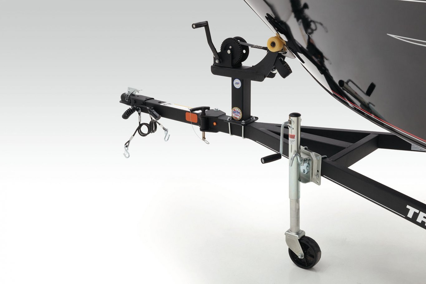 - Heavy-duty winch w/nylon strap & bow safety strap
