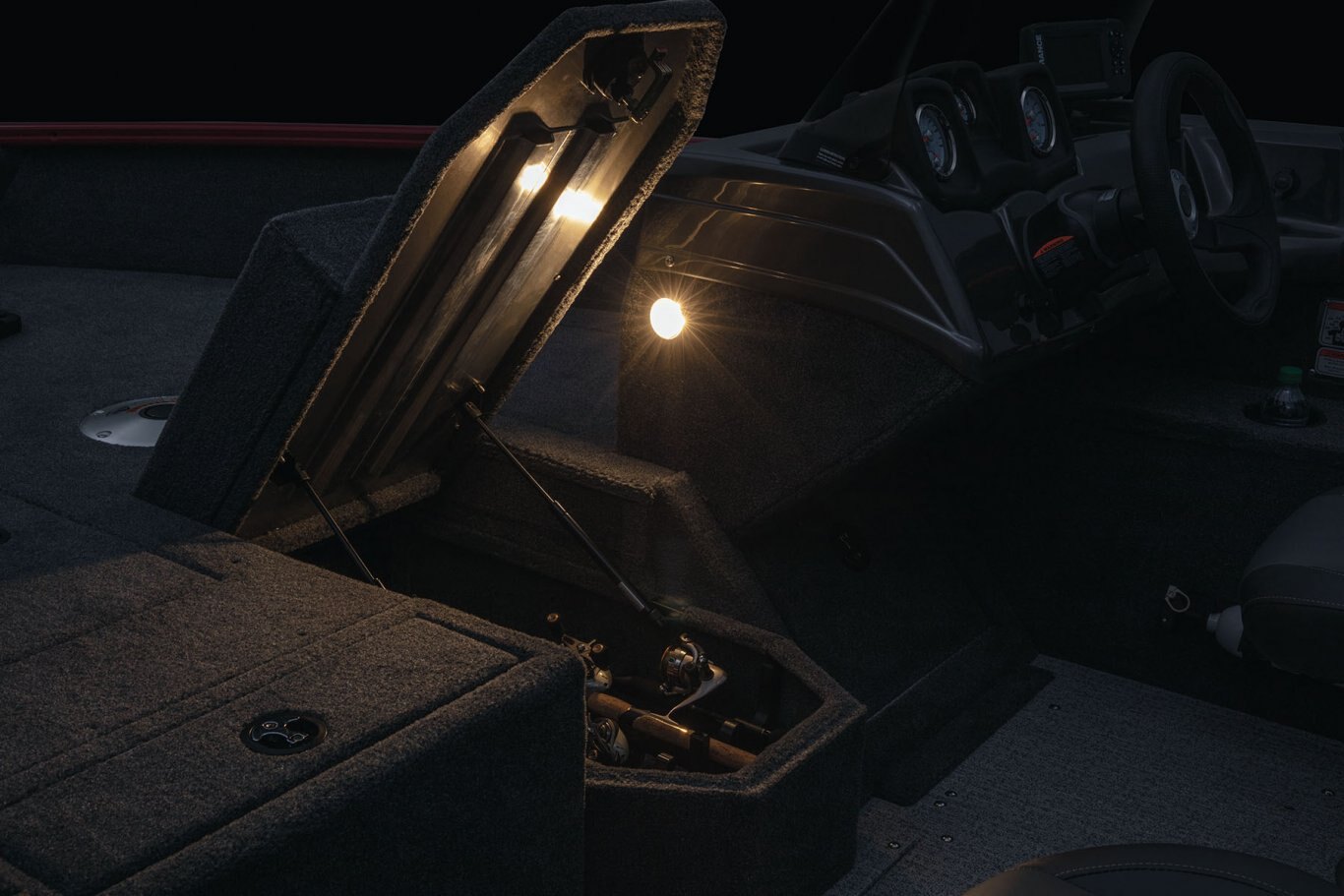 - Bow starboard compartment box w/larger, carpeted storage