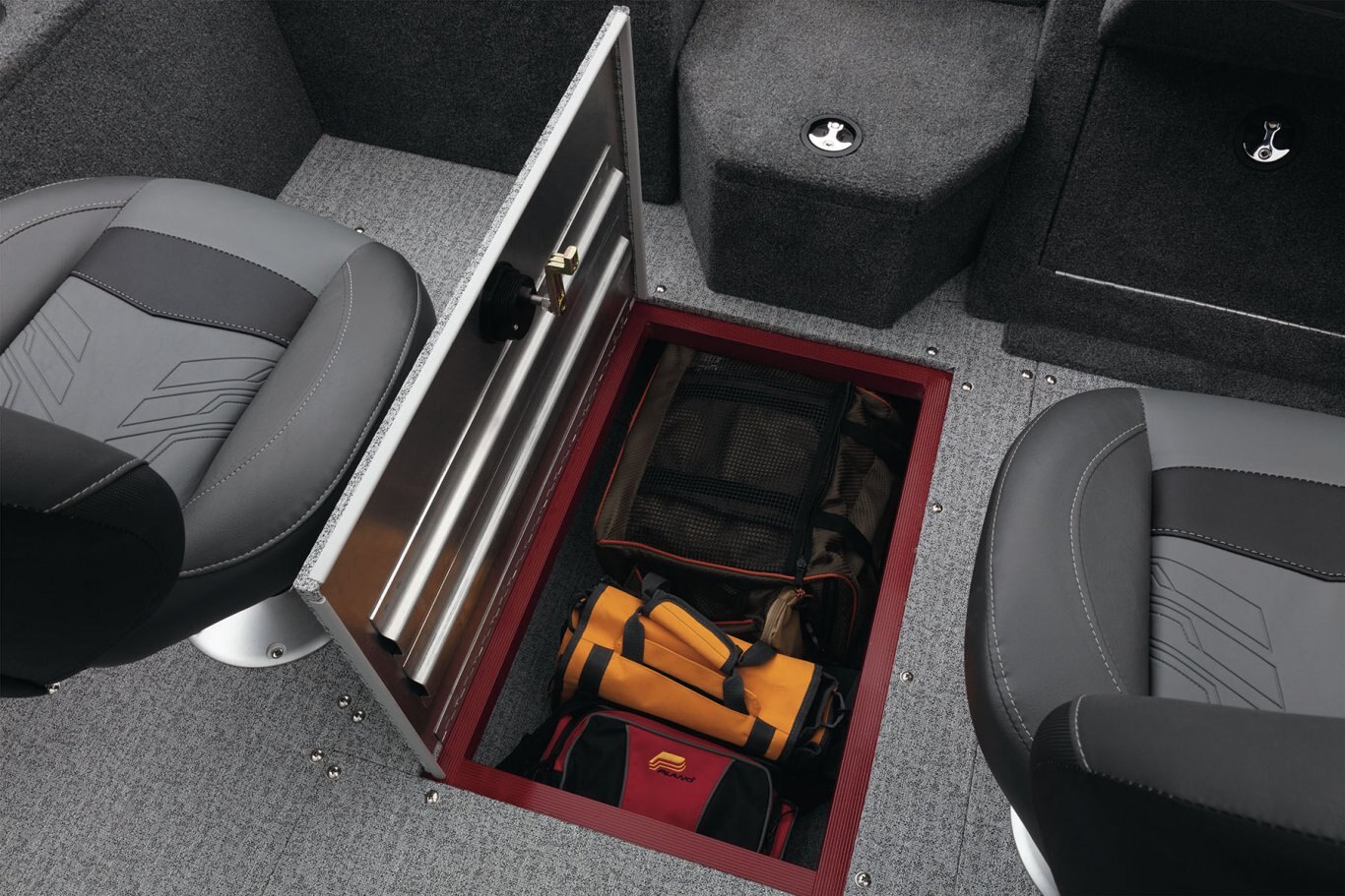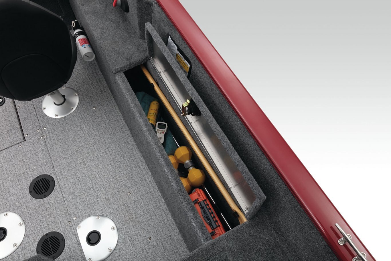 - All compartment lids are flush-mount, carpeted & all-aluminum for structural rigidity, tight fit & long-term durability