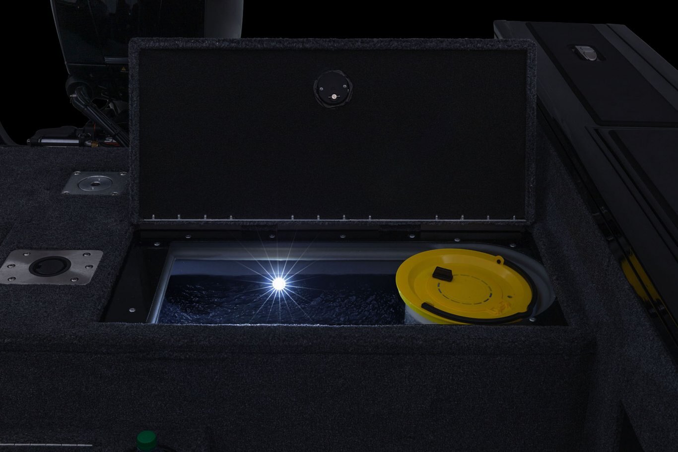 - Aft 30-gal. (113.56 L), 16 x 40" (40.64 x 101.6 cm) livewell w/port bait bucket holder, timer, recirculator & pump-out system