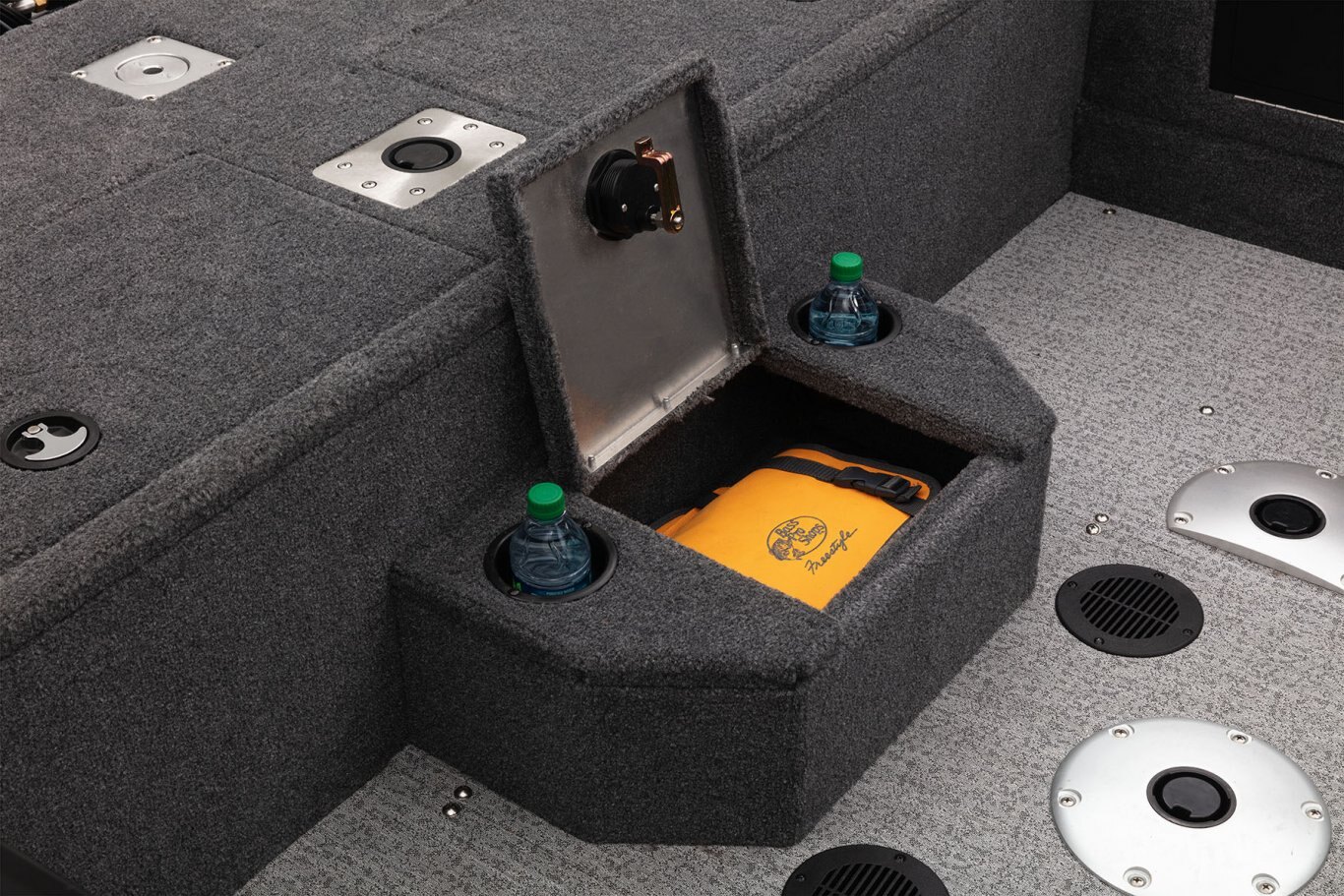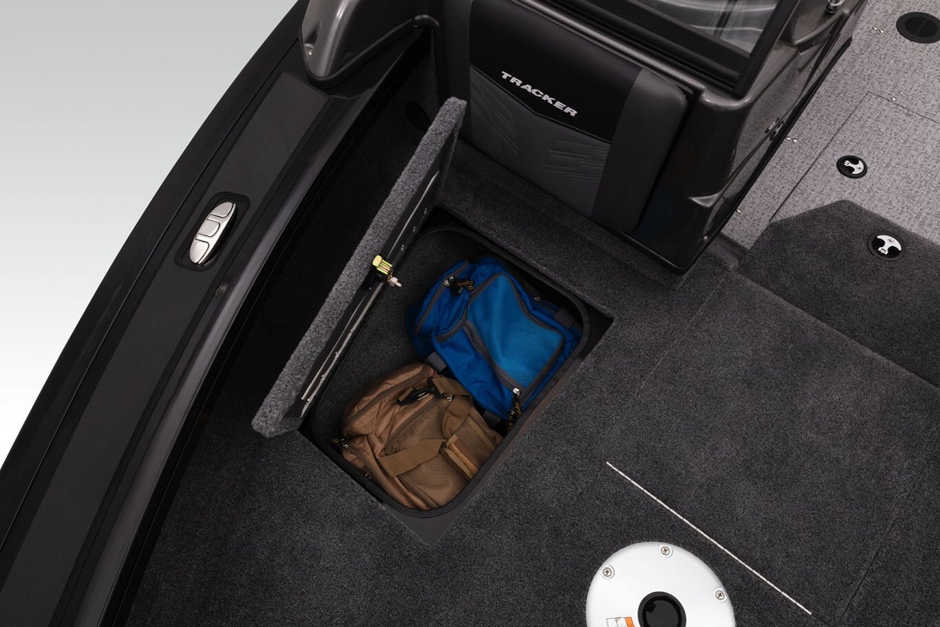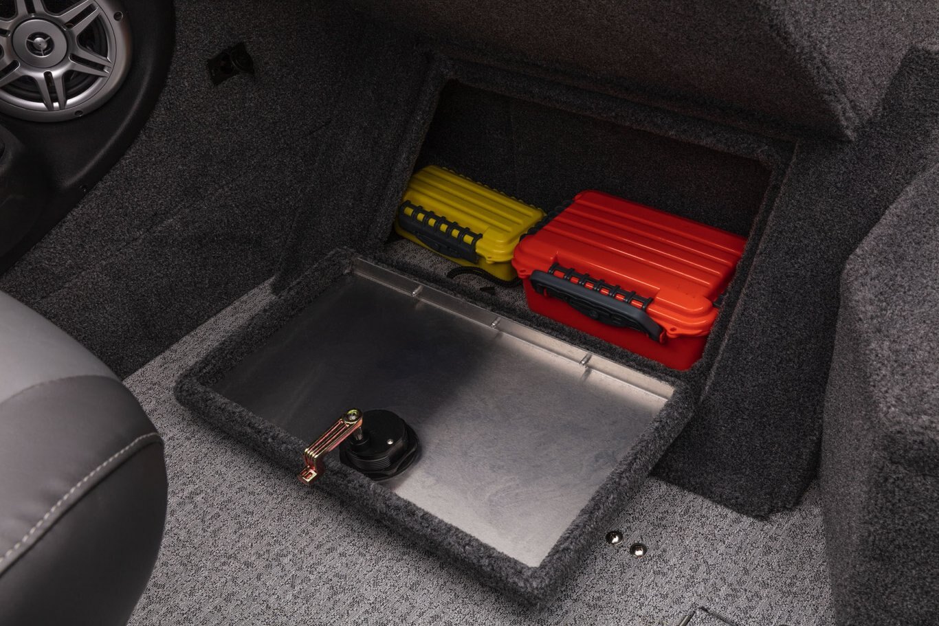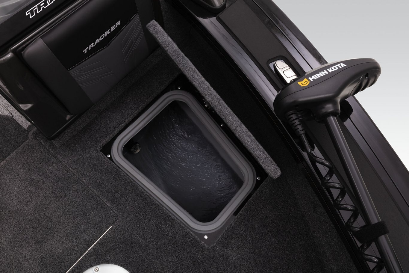 - In-floor center trolling battery storage compartment for up to 3 batteries