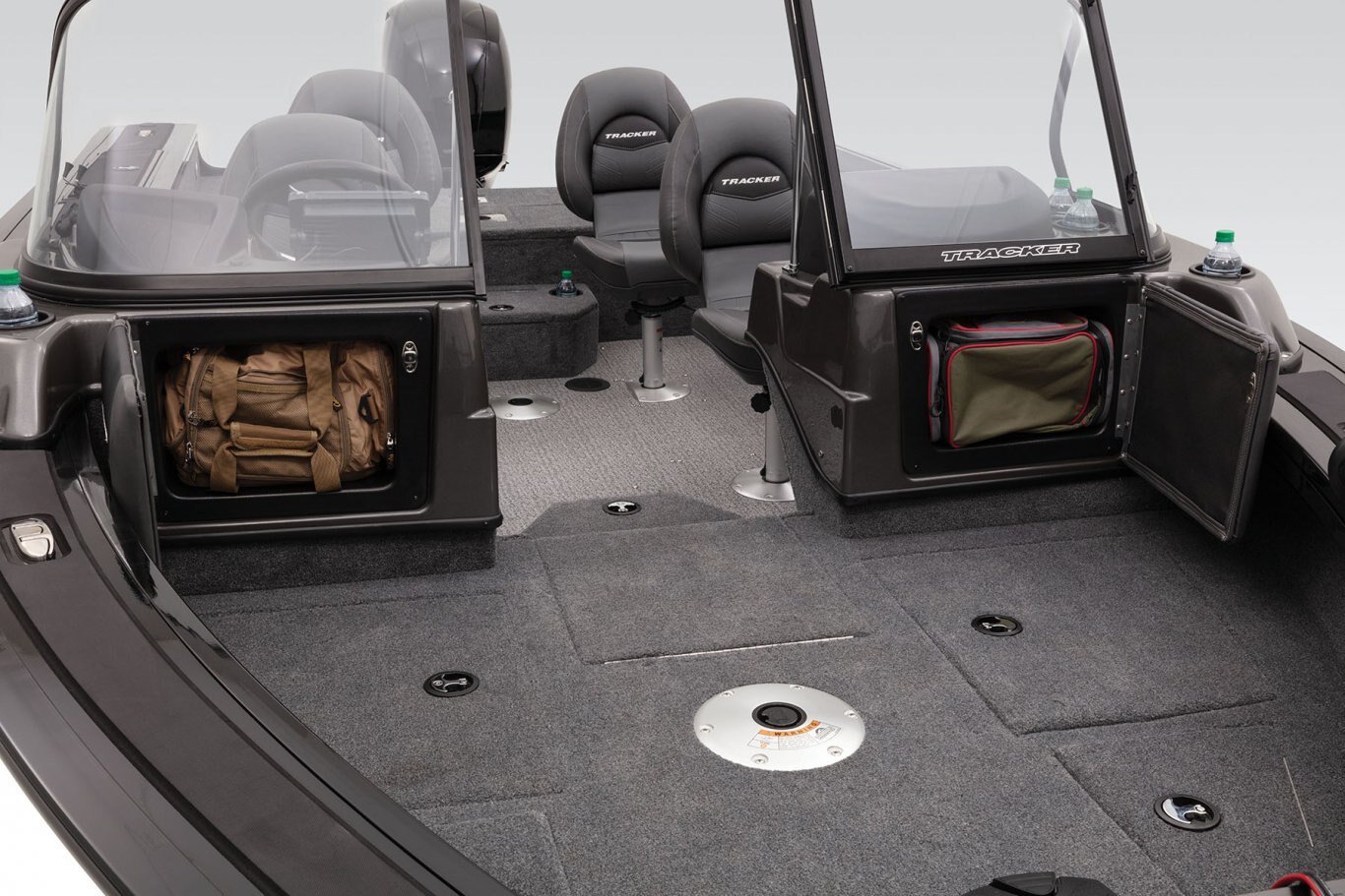 - Open storage compartment in bow panel