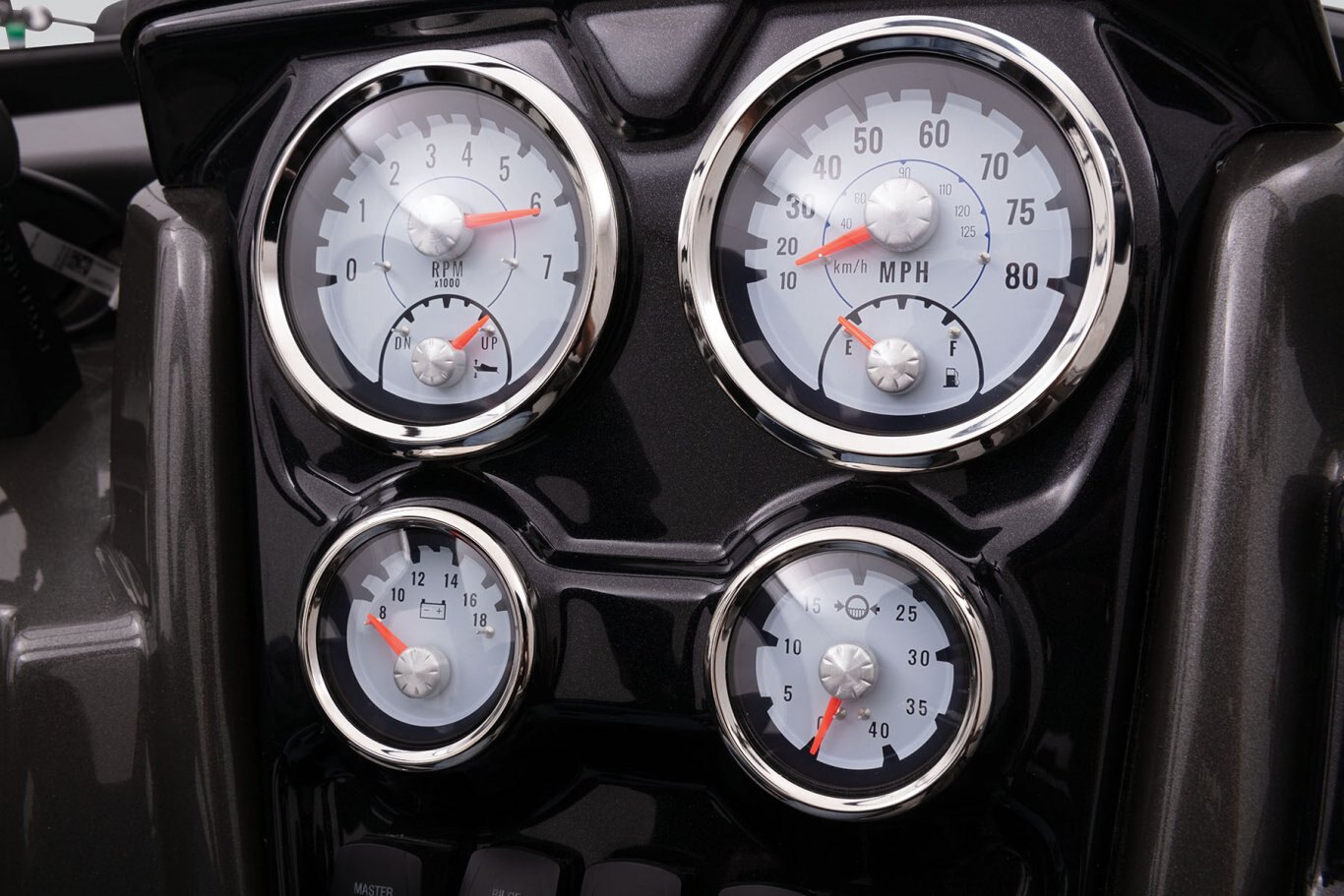 - Illuminated multifunction tachometer/trim gauge & speedometer/fuel gauge